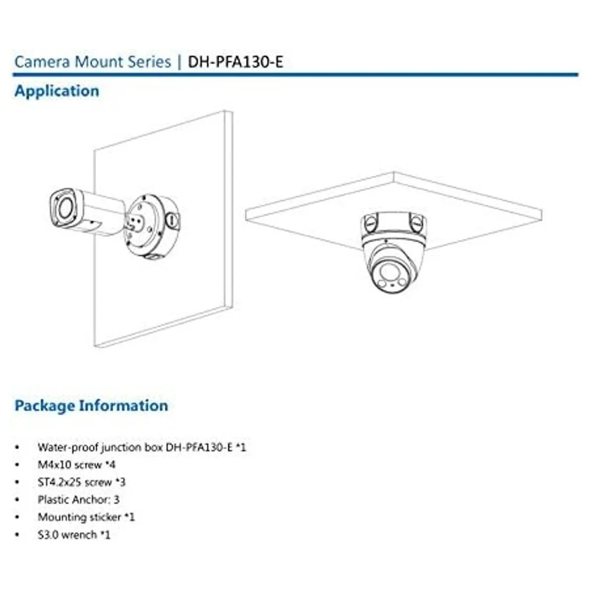 PFA130E Soporte de cámara de seguridad Caja de conexiones de montaje en pared IP66 a prueba de agua para HACHDW1100, IPCHDW1000HDW1200HDW3200HDW4100HDW4200HDW4300S