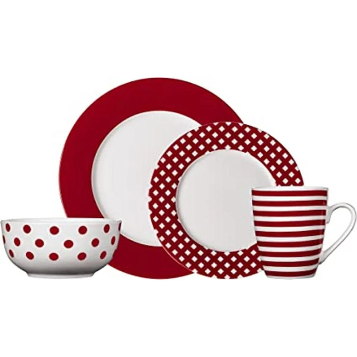 Pfaltzgraff Kenna Red Juego de vajilla de porcelana de 16 piezas, servicio para 4 personas
