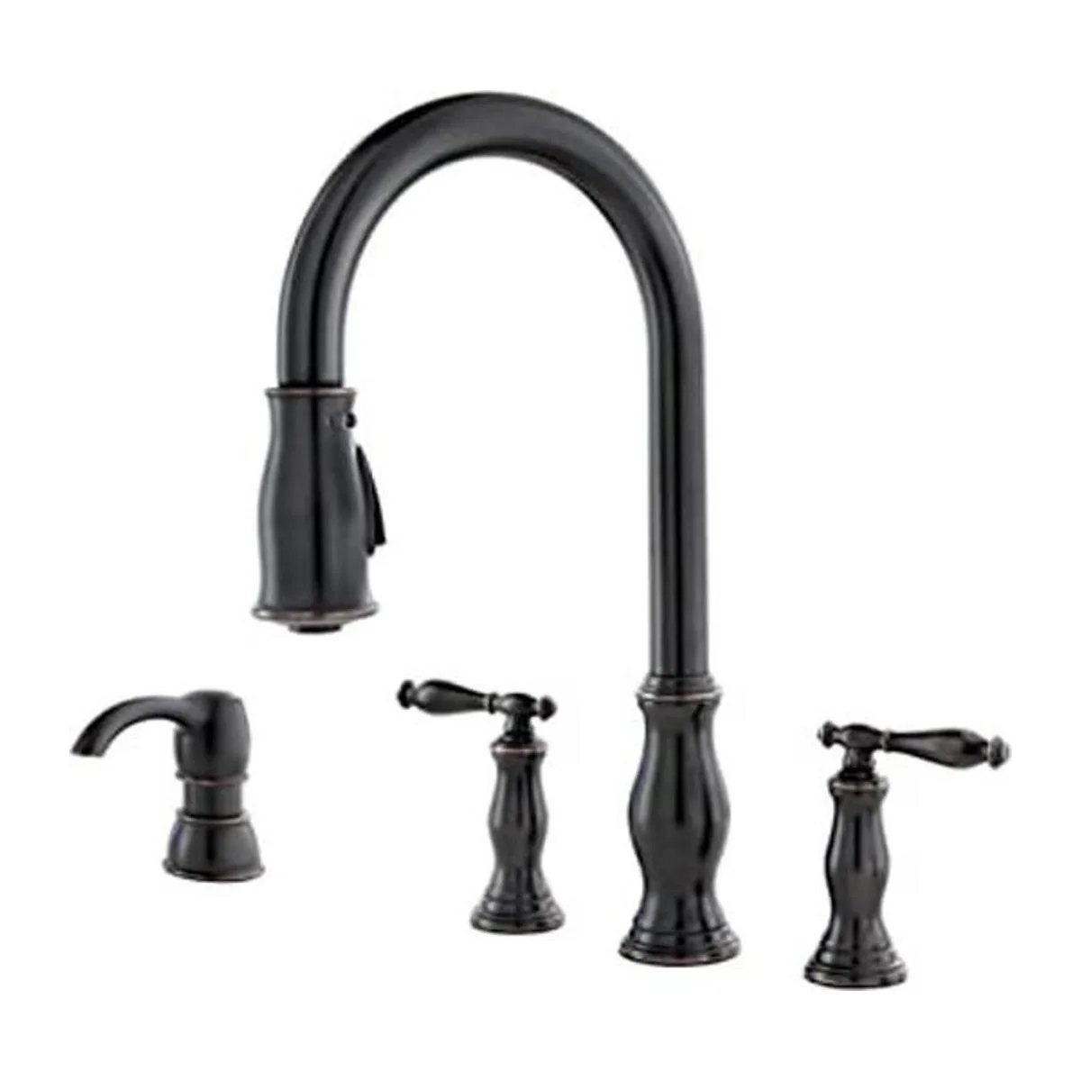 Pfister F5314HNY Grifo de cocina desplegable Hanover de 2 manijas de 3 o 4 orificios, bronce toscano
