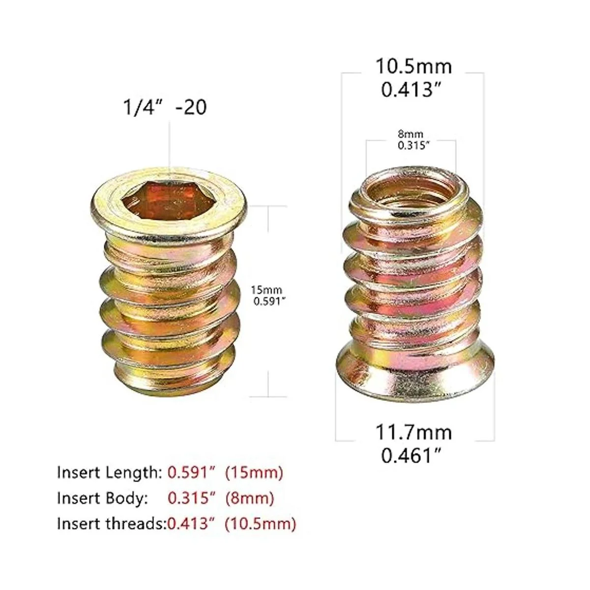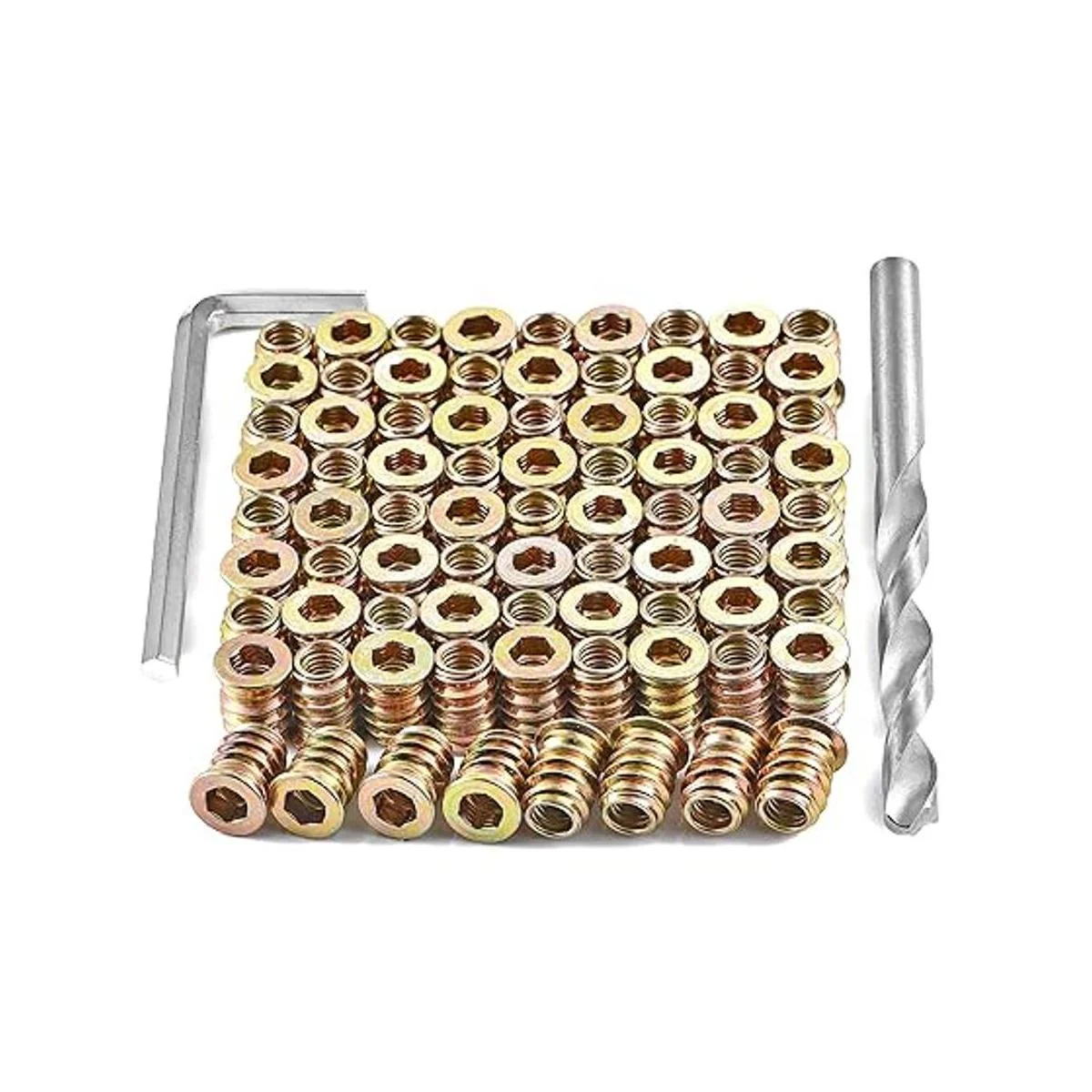 PGMJ 80 piezas de 1420 insertos de madera para muebles, tornillos en tuerca, conector de cierre roscado, unidad hexagonal para muebles de madera surtido 140.787×0.591 in
