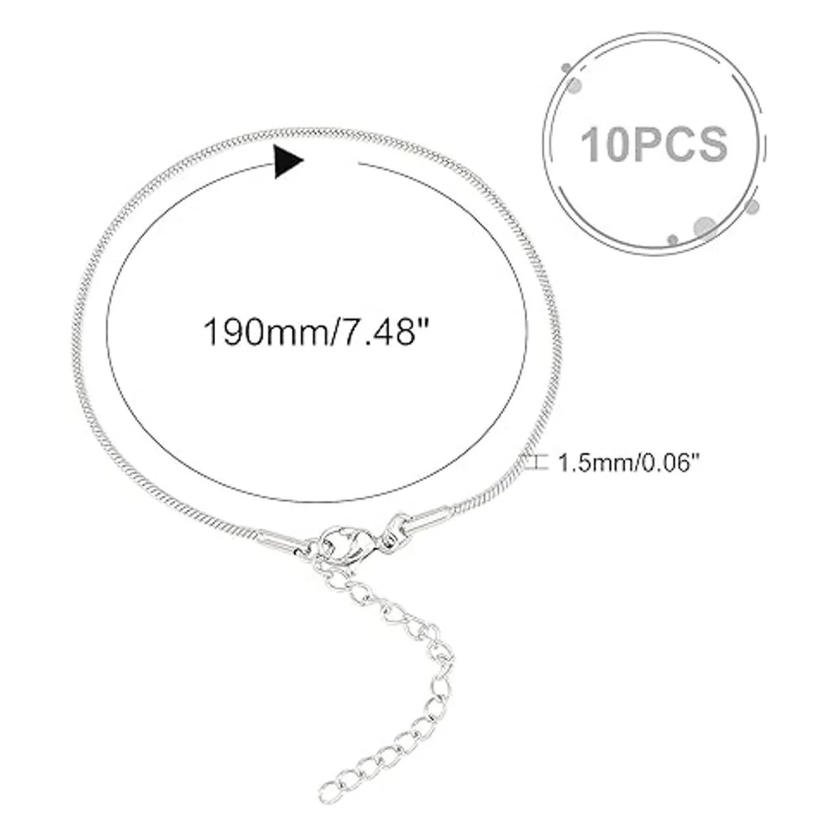 PH PandaHall 10 pulseras de cadena de serpiente de acero inoxidable de 7.480 in con cierre de garra de langosta para accesorios de joyería de 0.059 in