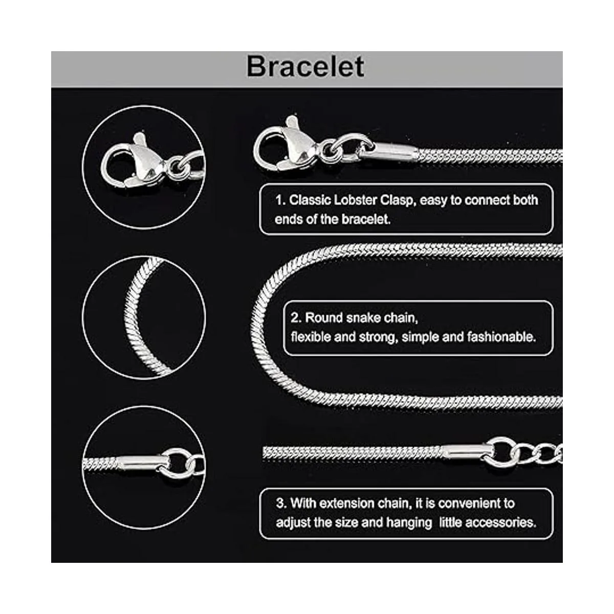 Tamaño único: alrededor de 0.059 in de ancho, 7.480 in de largo, si quieres añadir encanto o abalorio, el agujero debe ser más grande que 0.197 in, las pulseras de cadena de acero inoxidable capturarán la luz y crearán un brillo vibrante que realza el lujo que hay en ti