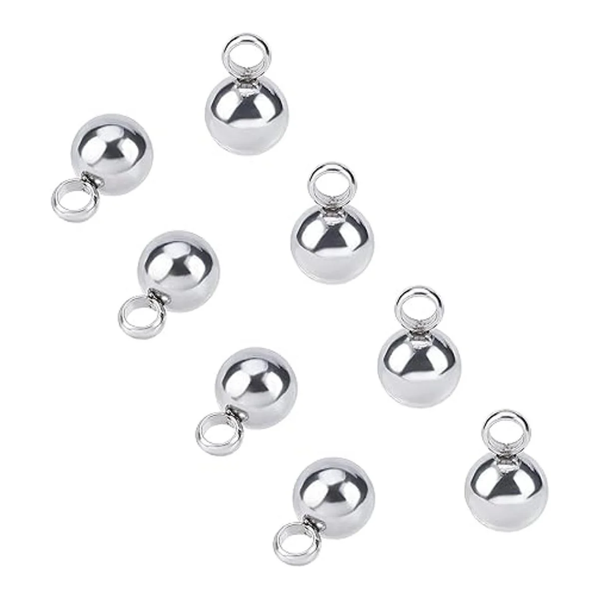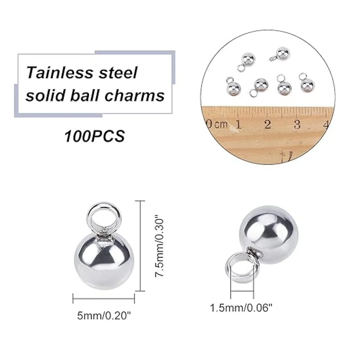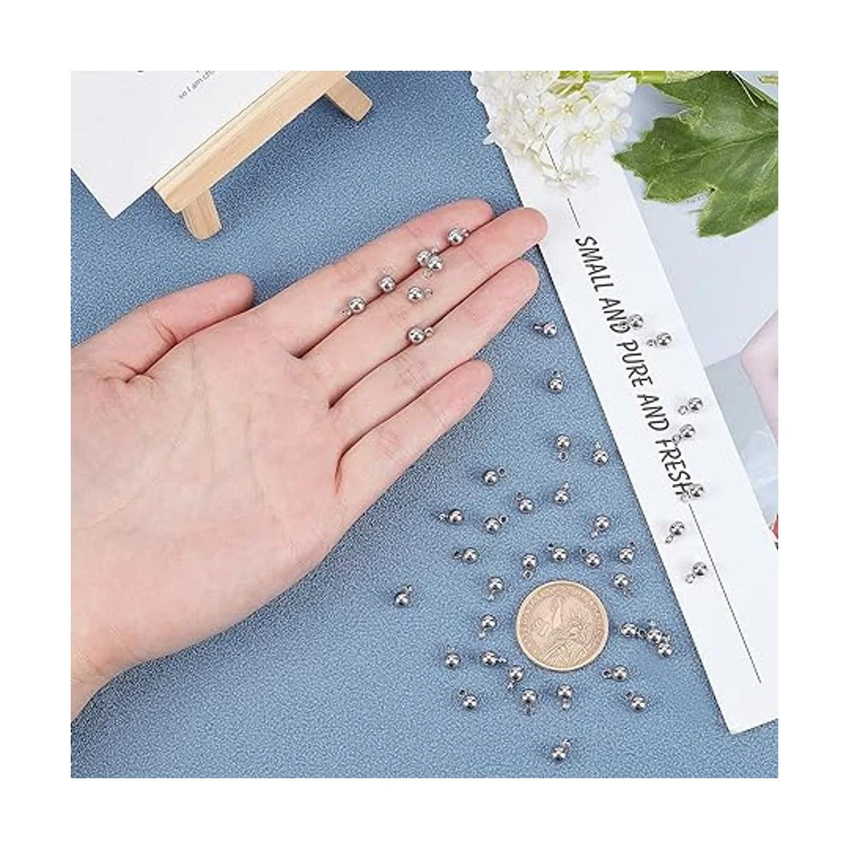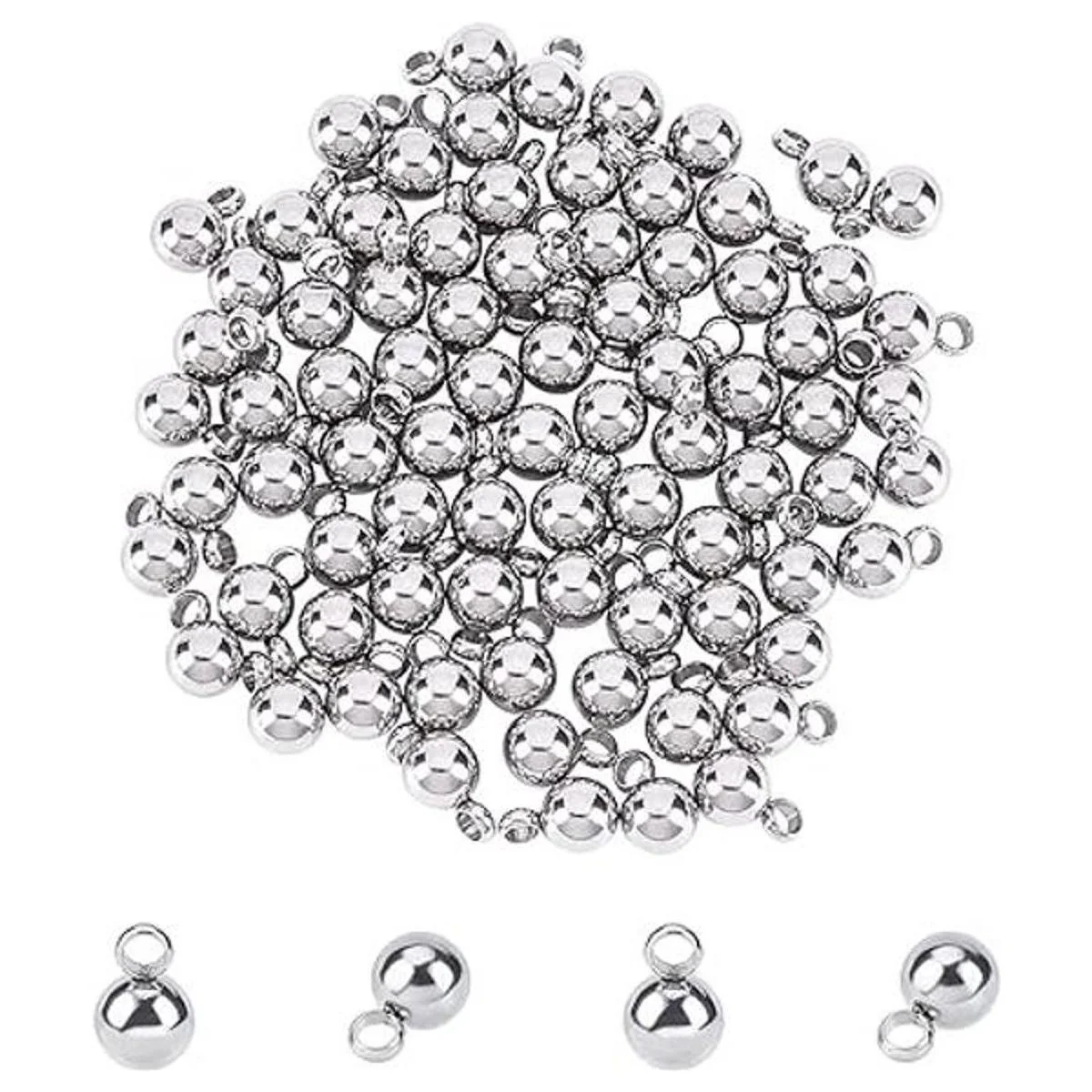 PH PandaHall 100 colgantes redondos de acero inoxidable pequeños abalorios de bolas de plata colgantes DIY para mujeres joyería pulsera fabricación 0.295×0.197 in, agujero 0.059 in