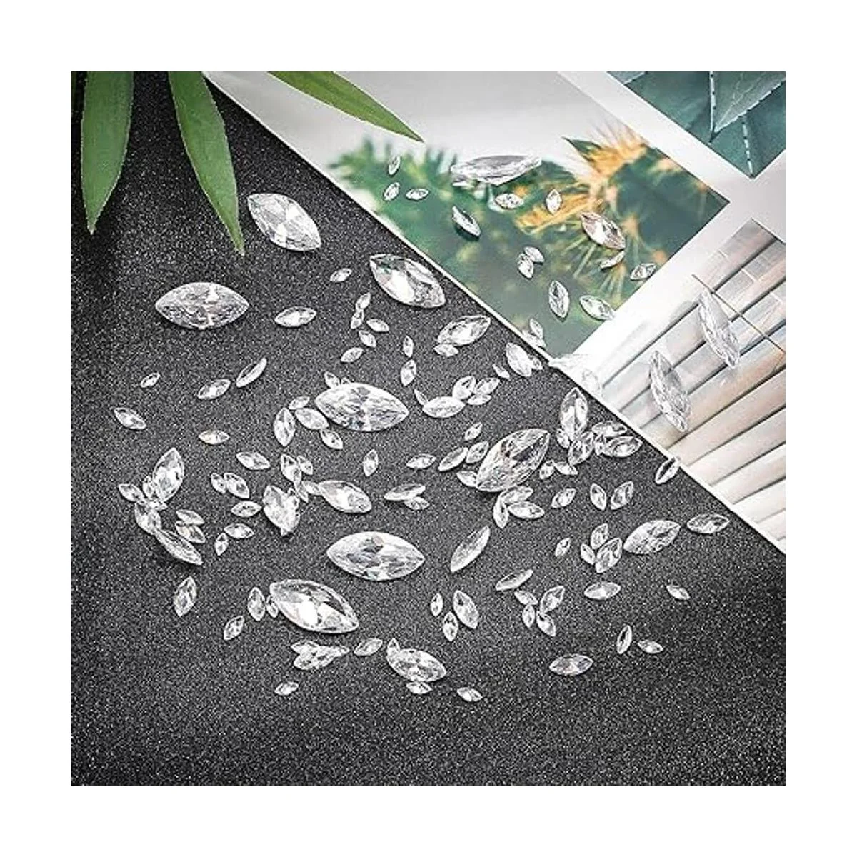 Material de calidad: hecho de circonita cúbica de calidad y lados multifacéticos, se puede pegar a muchas superficies, incluyendo tela, plástico, metal, etc.