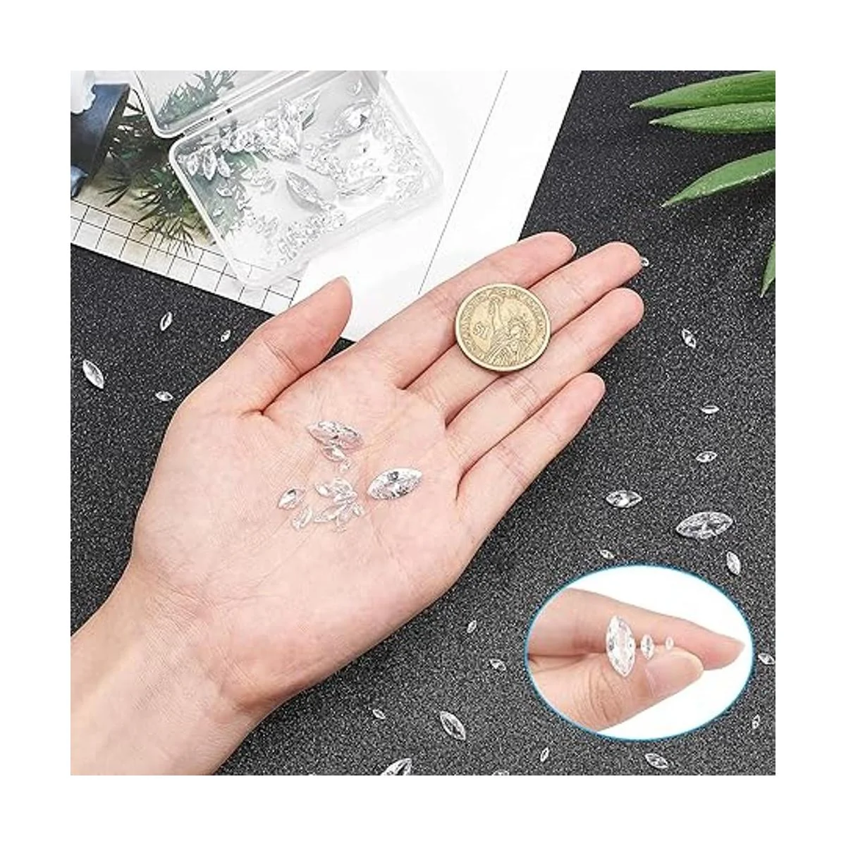 6 tamaños disponibles: el paquete incluye cabujones de circonita cúbica en 6 tamaños: longitud 0.157 in 50 piezas, 0.197 in 30 piezas, 0.236 in 20 piezas, 0.276 in 20 piezas, 0.394 in 10 piezas y 0.630 in 10 piezas.