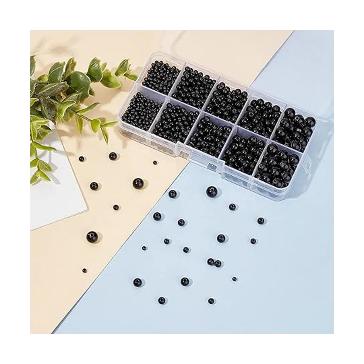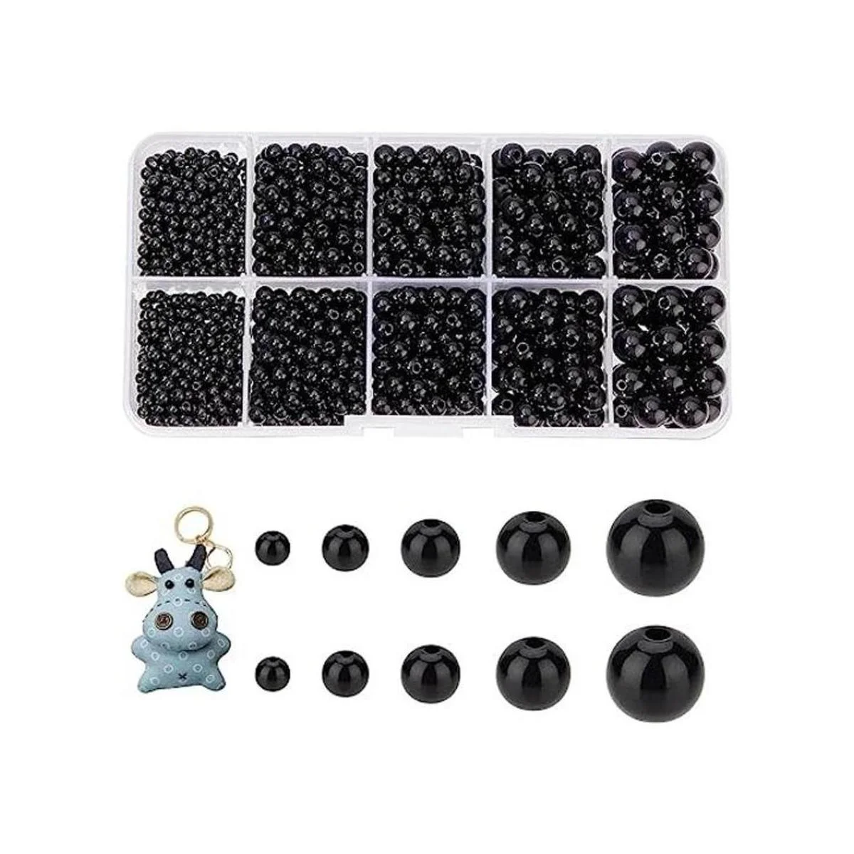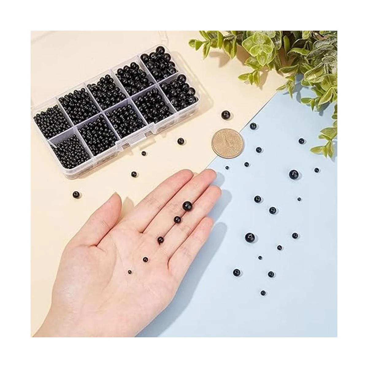 PH PandaHall 1380 piezas de 5 tamaños de ojos negros, cuentas de ojo de muñeca negra, osos títeres de peluche, señuelos, costura, manualidades, ojos, cuentas espaciadoras sueltas para hacer manualidades, pendientes, collares, pulseras, collares y joyas