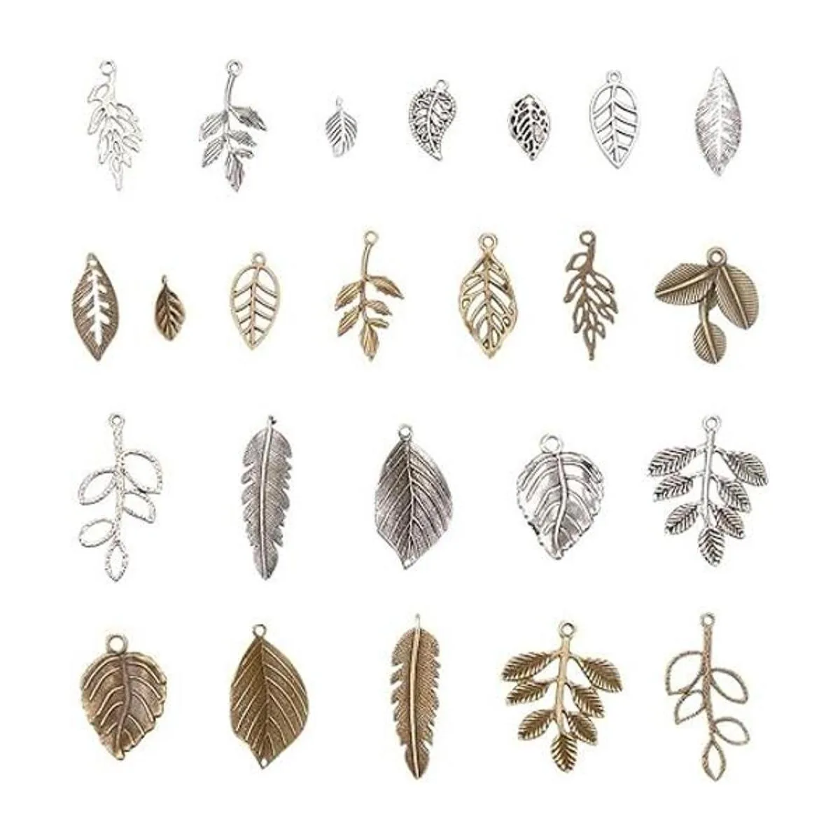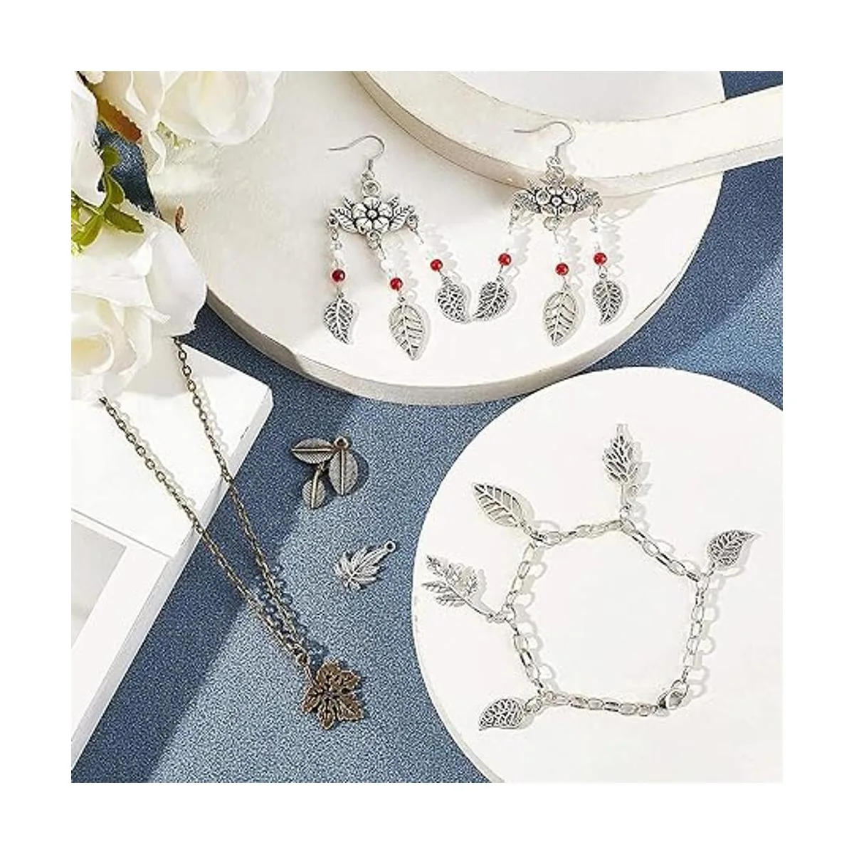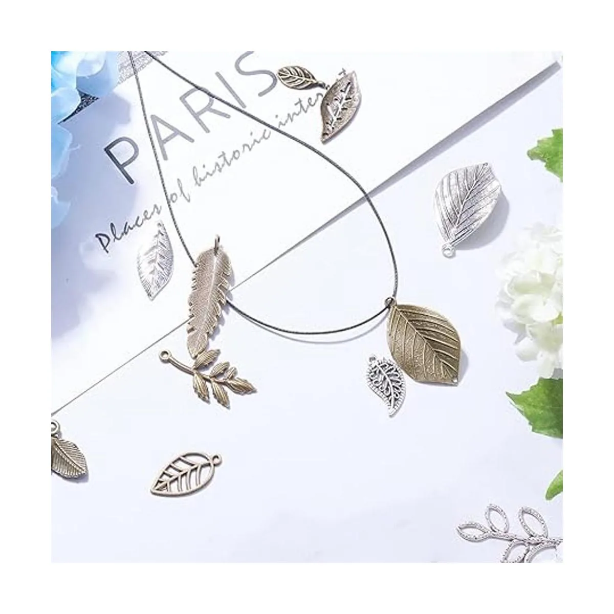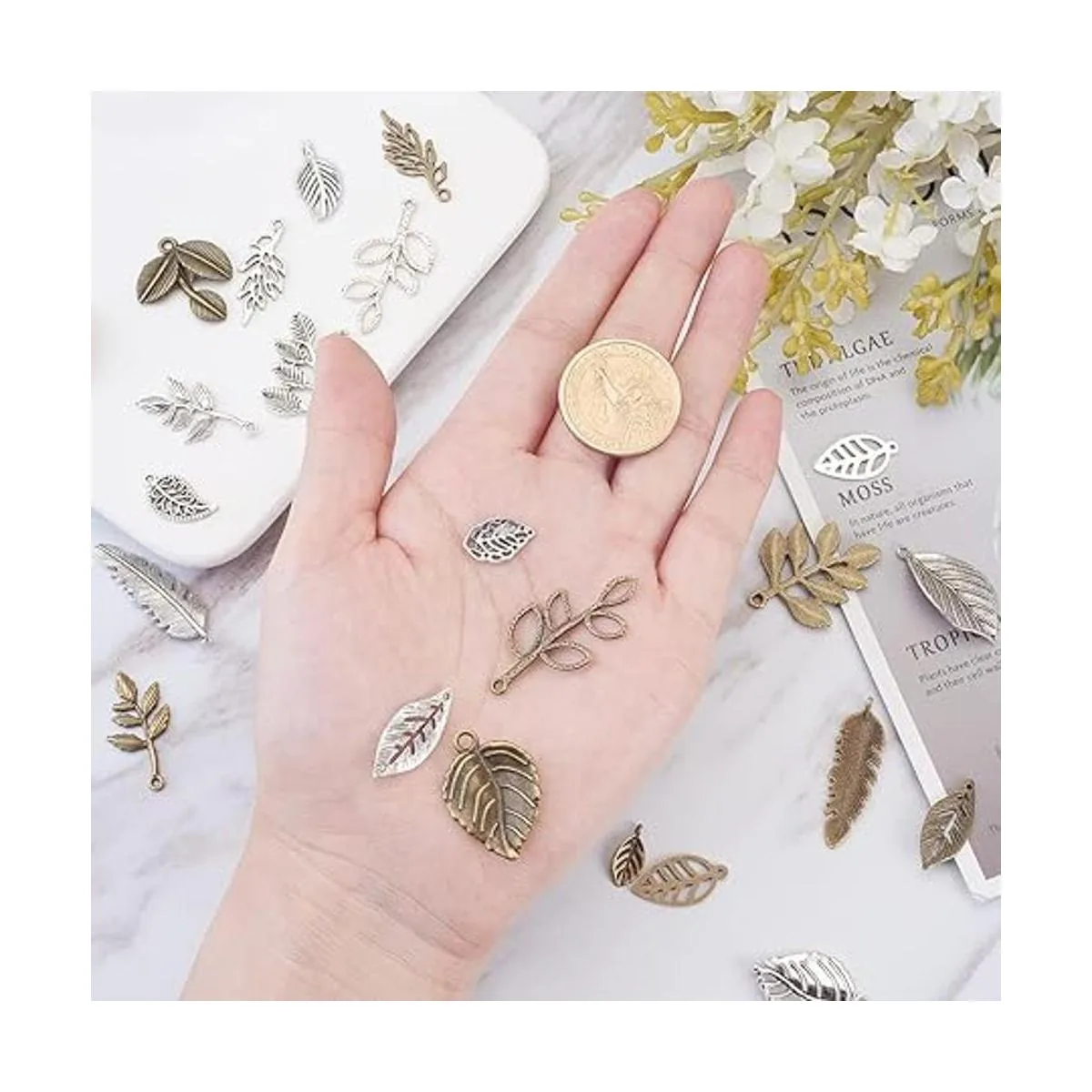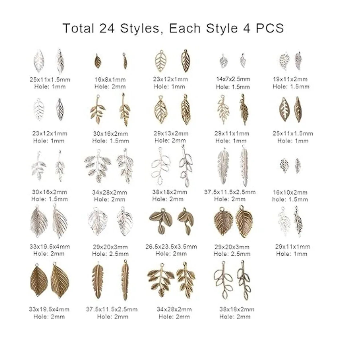 14 estilos: 96 piezas de 14 estilos de dijes de hoja de plata antigua y color bronce antiguo. Diferentes tamaños y colores están surtidos, lo que sea que puedas encontrar tus favoritos.