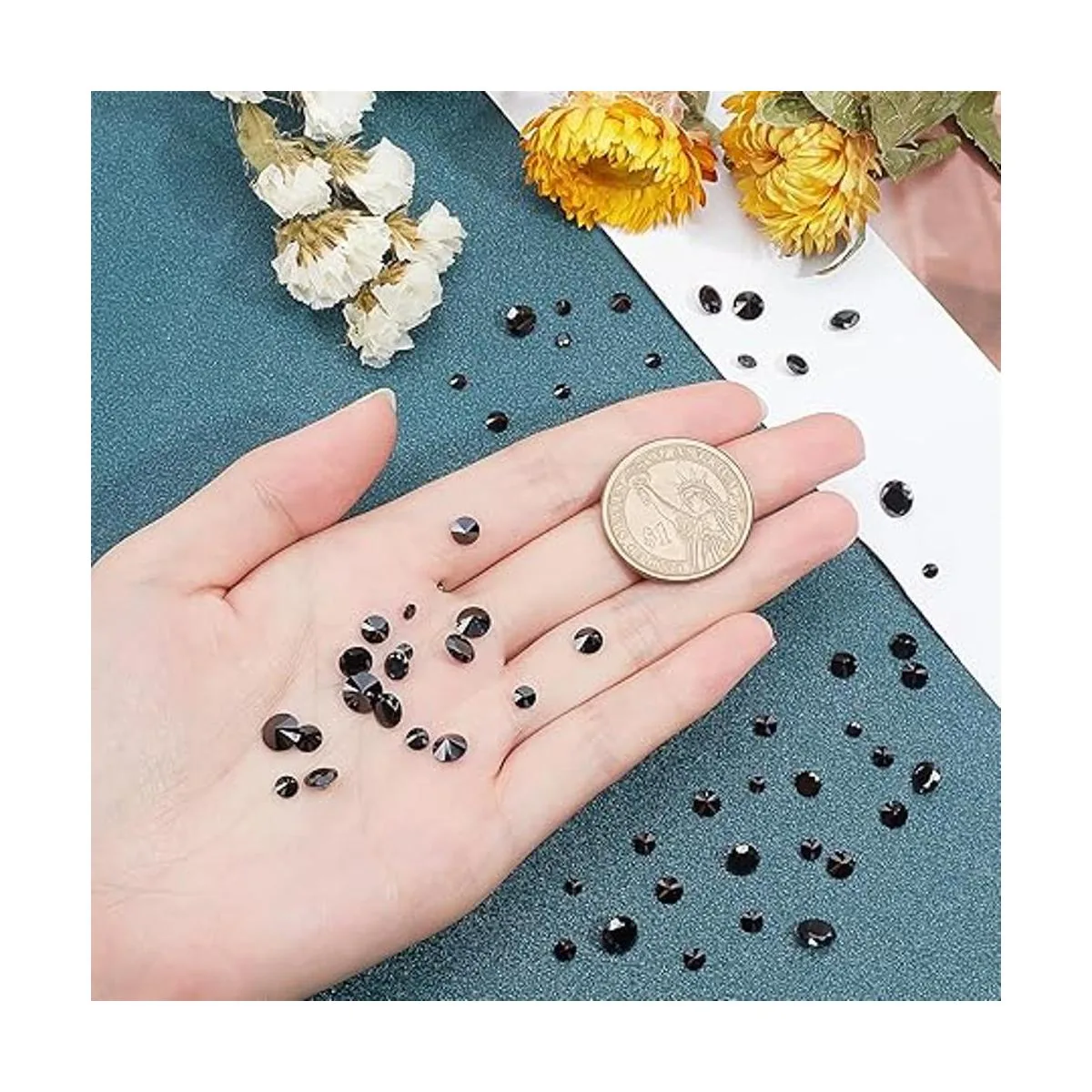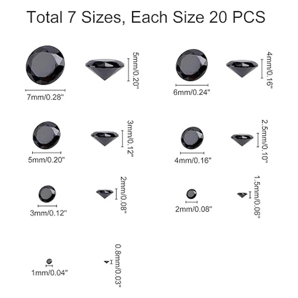 PH PandaHall 140 piezas de circonita cúbica, 7 tamaños, cabujones de circonita negra, cabujones facetados con diamantes de imitación en la parte posterior puntiaguda, para pendientes, pulseras, joyas, manualidades, manualidades, 1 0.276 in, sin agujeros