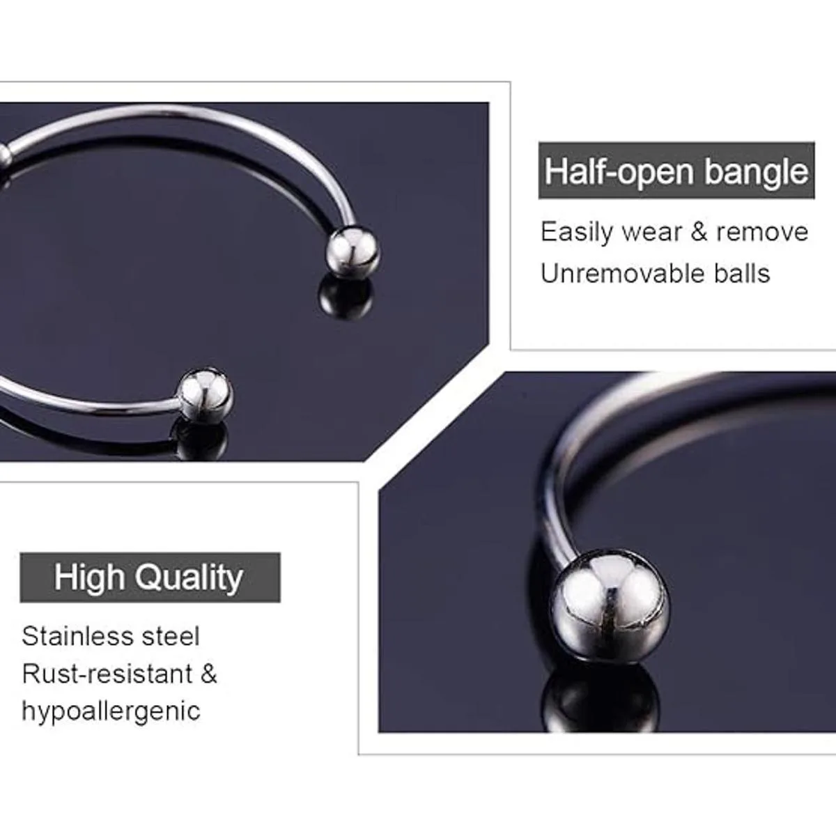 Diseño único: el diseño simple pero clásico de medio abierto hace que la pulsera sea fácil de llevar sin que se caiga fácilmente. Las bolas bonitas y pequeñas no se pueden quitar, lo que evitará que los colgantes se deslicen al azar.