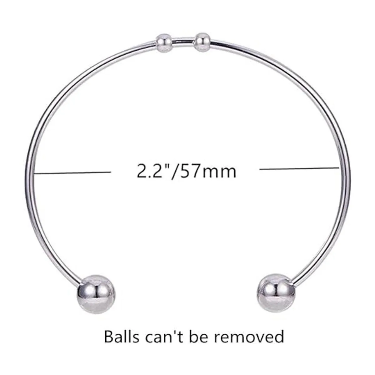 Tamaño y paquete: el brazalete es de aproximadamente 2.244 in de diámetro, 0.079 in de grosor; la distancia de apertura entre las dos bolas es de aproximadamente 1.181 in. Calidad: 20 unidades en total.