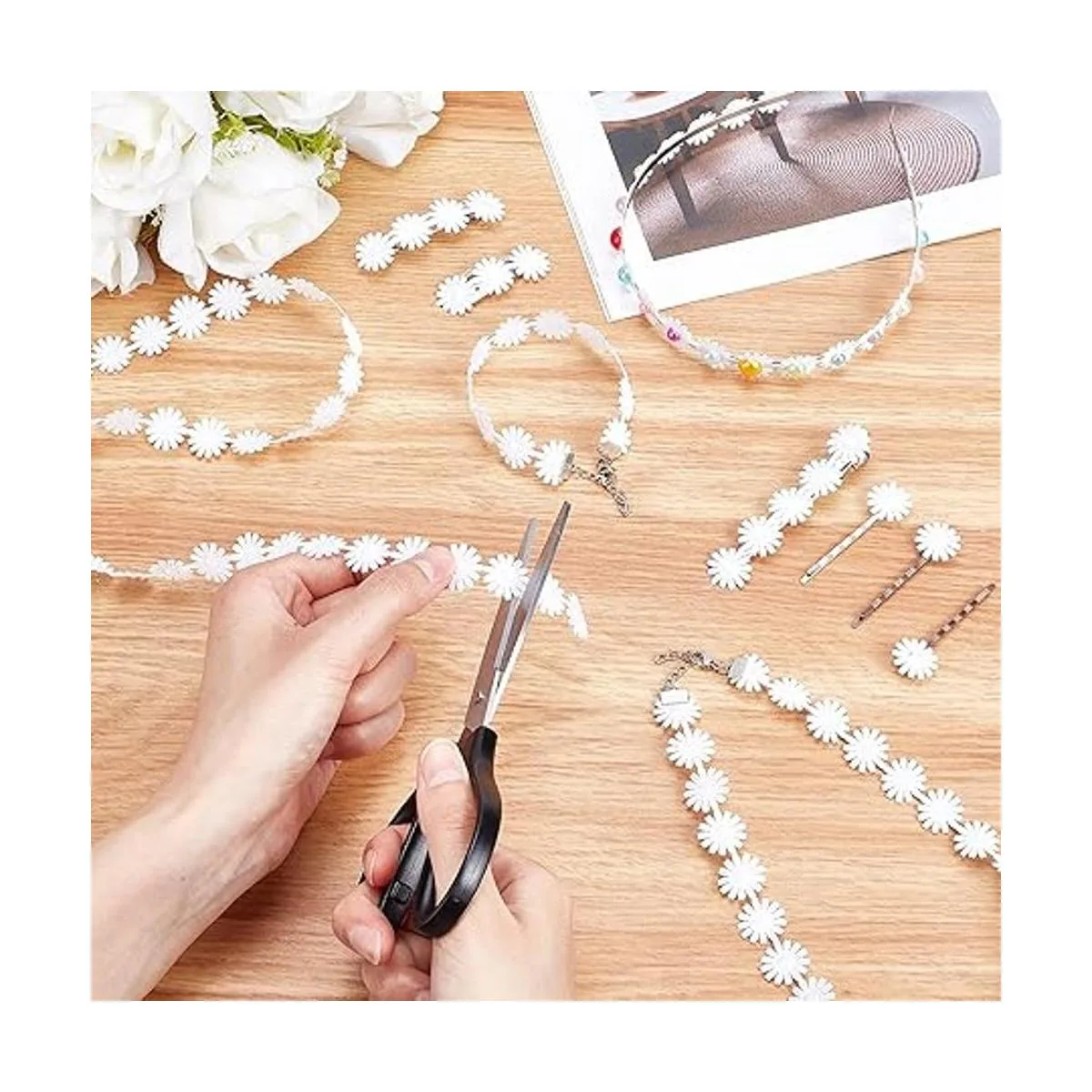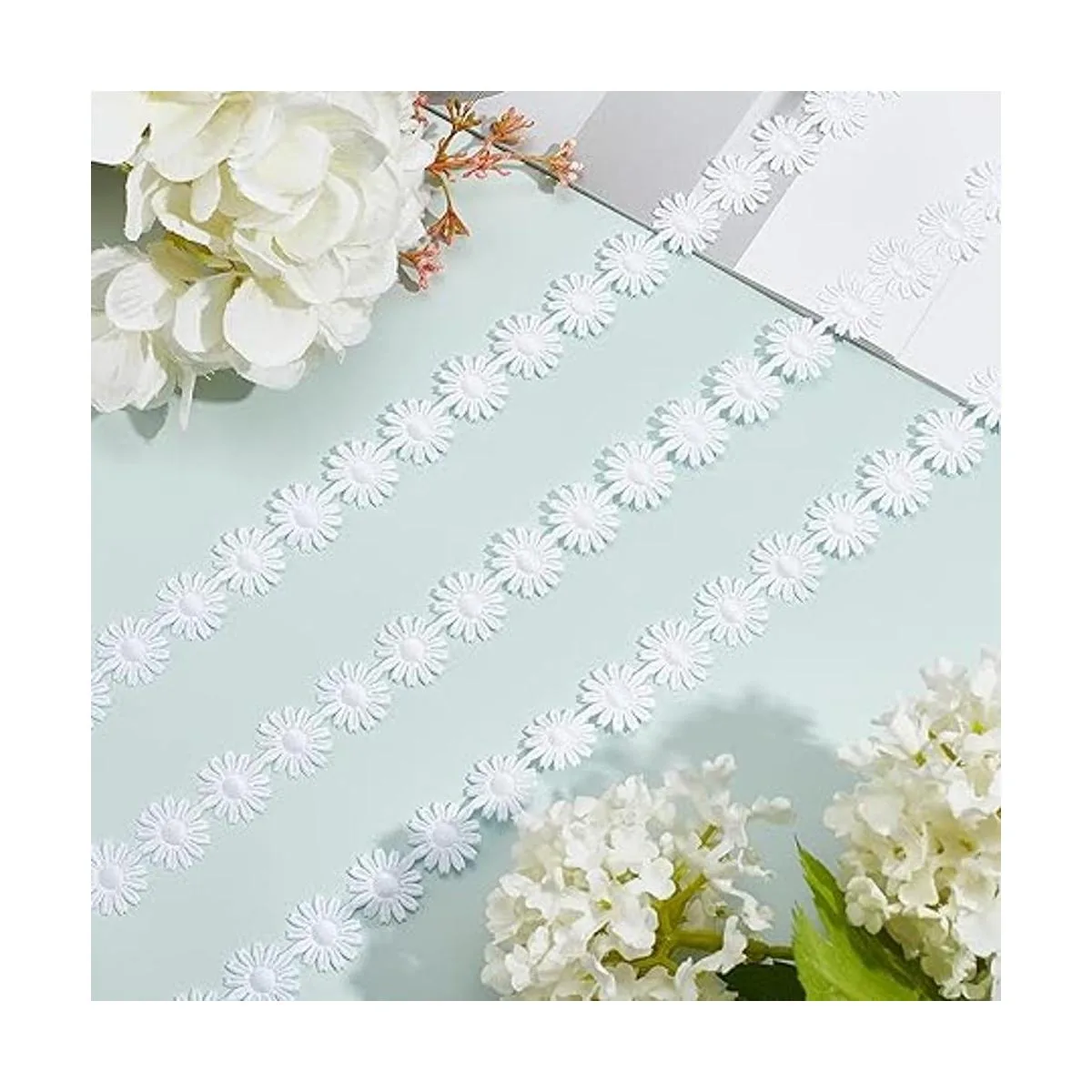 Fácil de usar: se pueden utilizar en una fila o individualmente ya que se separan fácilmente. La cinta de encaje de flores y margaritas se puede aplicar para reparar o decorar tu ropa, muy adecuada para diademas, clips de pelo.