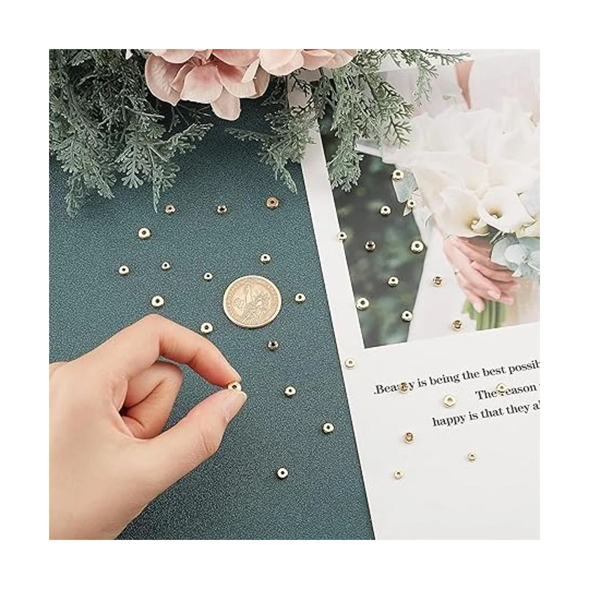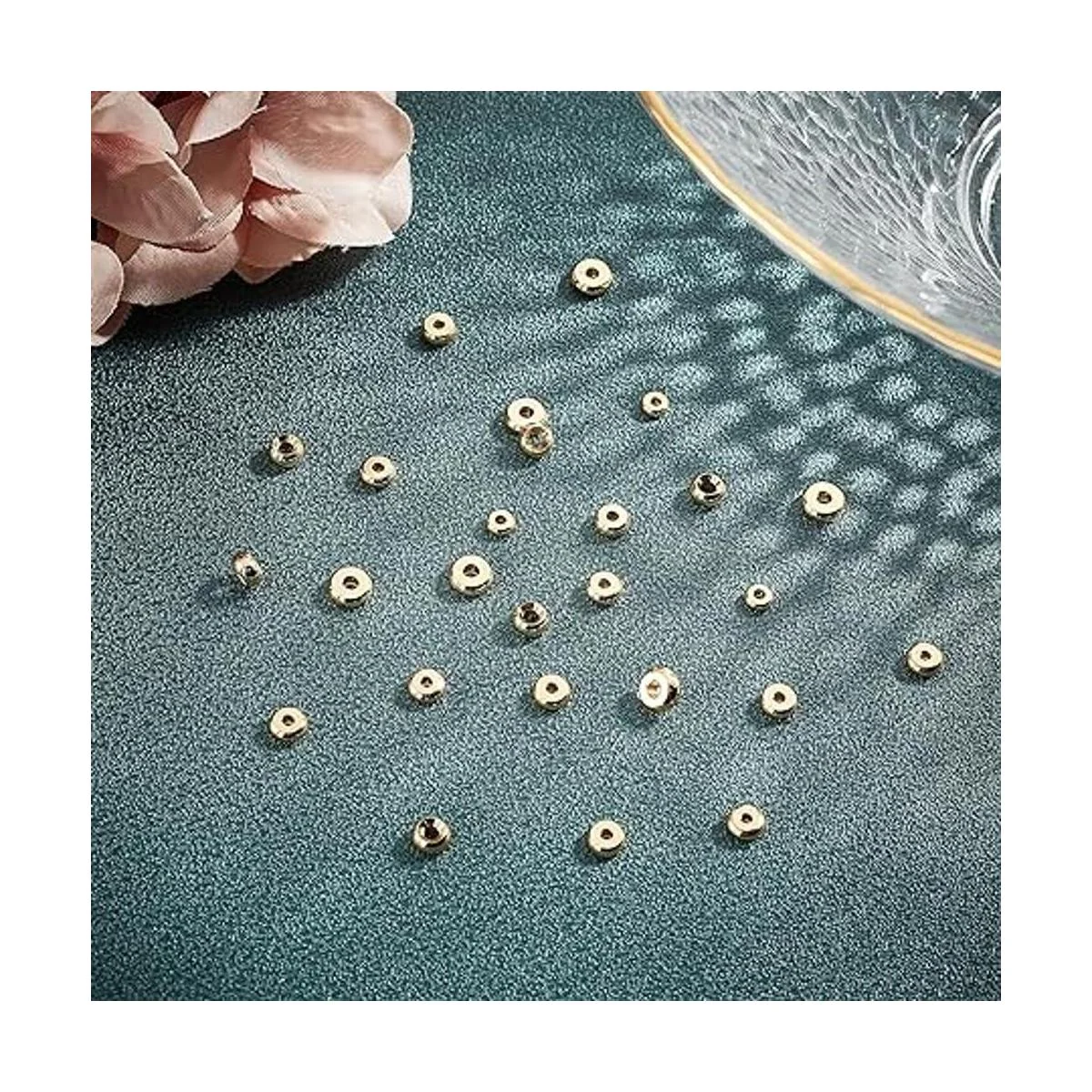 Cuentas de oro de 14 quilates: chapado de larga duración, con gran textura y textura, hecho de latón de alta calidad, duradero y no es fácil de romper, añade una sensación más brillante a tus joyas de diseño o manualidades, adecuado para un uso prolongado.