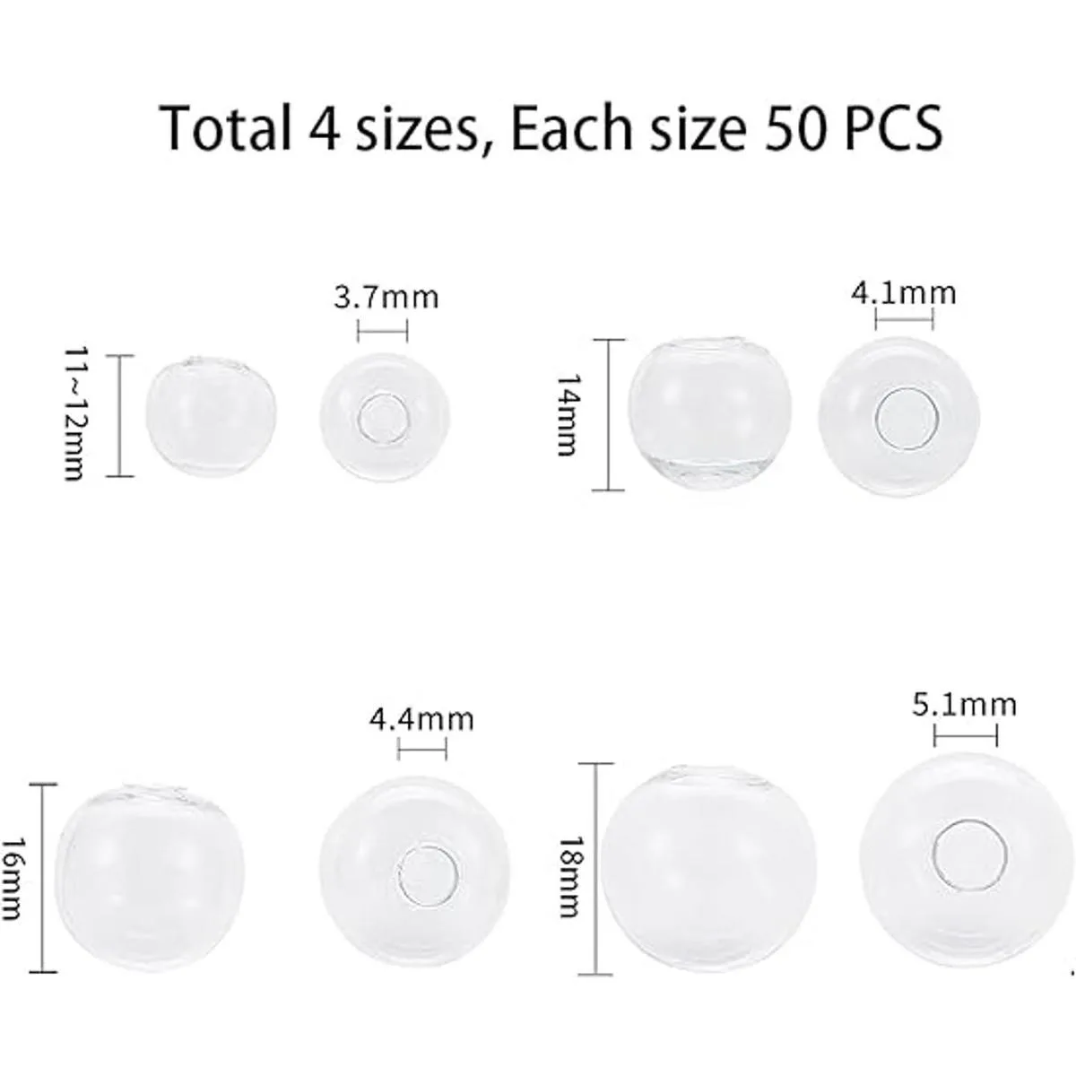 PH PandaHall 200 mini globos de cristal, 4 tamaños, botella de bola de vidrio con diseño de planeta UV, para manualidades, colgantes transparentes vacíos para dados de resina UV, para hacer aretes (0.472 in, 0.551 in, 0.630 in, 0.709 in)