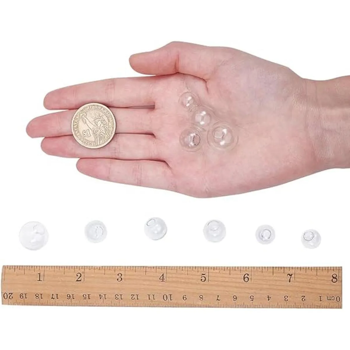 PH PandaHall 200 mini globos de cristal, 4 tamaños, botella de bola de vidrio con diseño de planeta UV, para manualidades, colgantes transparentes vacíos para dados de resina UV, para hacer aretes 0.472 in, 0.551 in, 0.630 in, 0.709 in