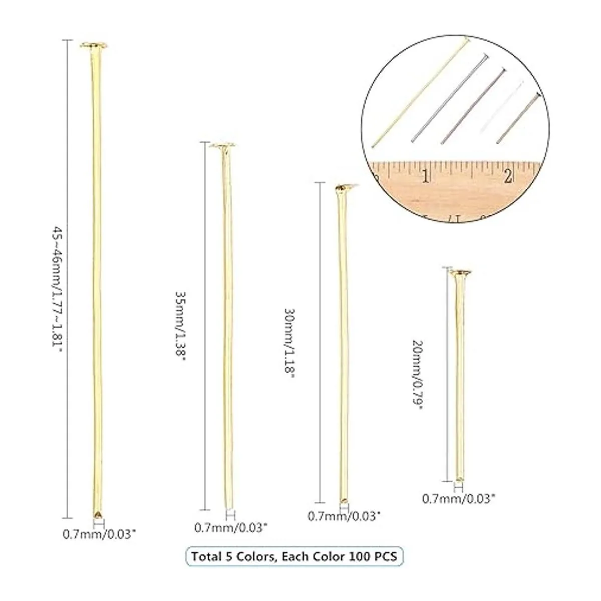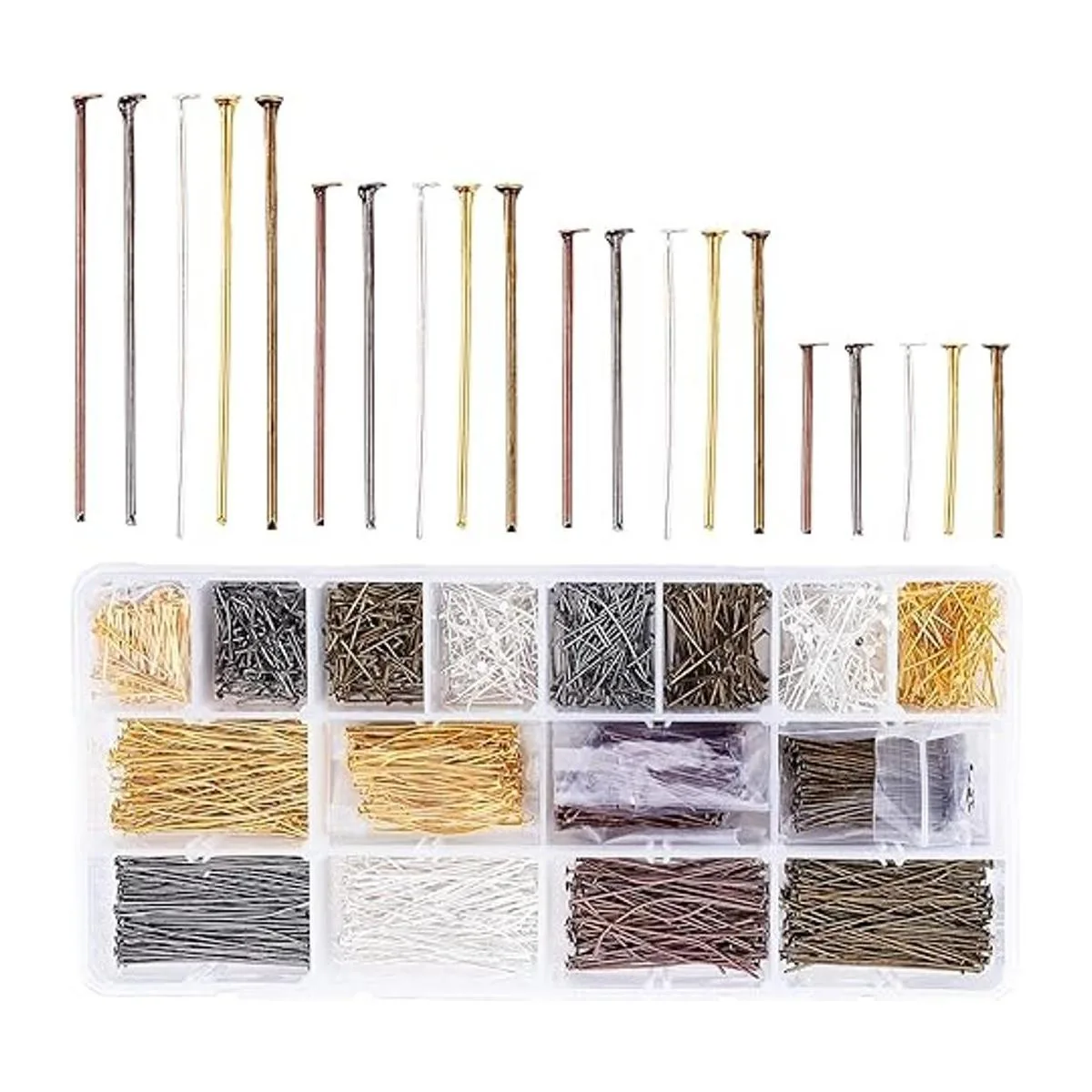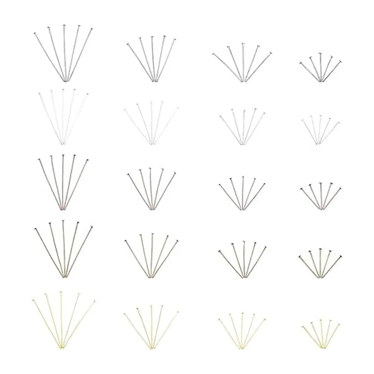 PH PandaHall 2000 pines de cabeza de joyería, 0.78/1.18/1.37/1.81 pulgadas, pines de cabeza plana de hierro para hacer joyas, pines de extremo de metal para abalorios, aretes y pulseras, 5 colores