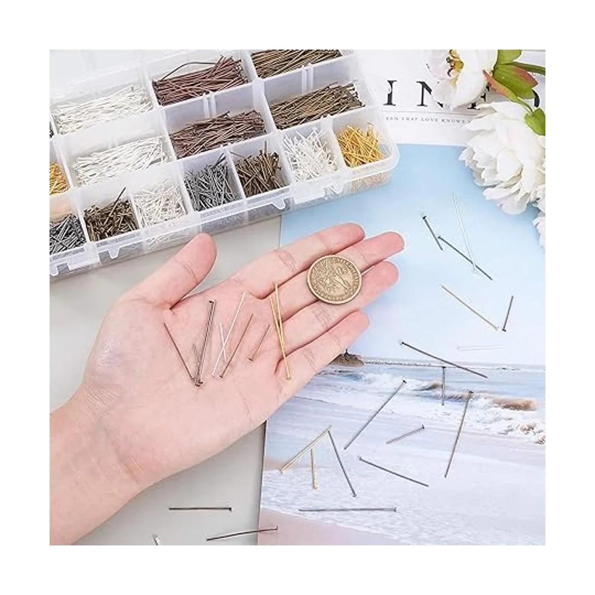 Cantidad: 100 piezas de cada color de cada tamaño, 2000 pines de joyería para hacer joyas en total. Ojales de cabeza plana a granel, suficientes para su uso artesanal.