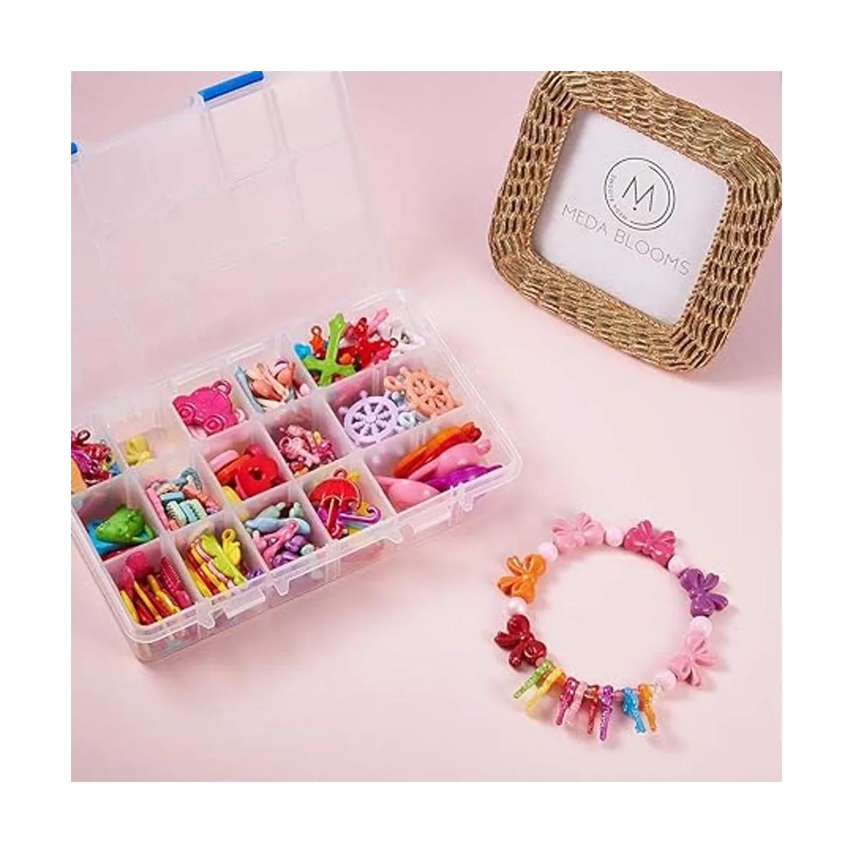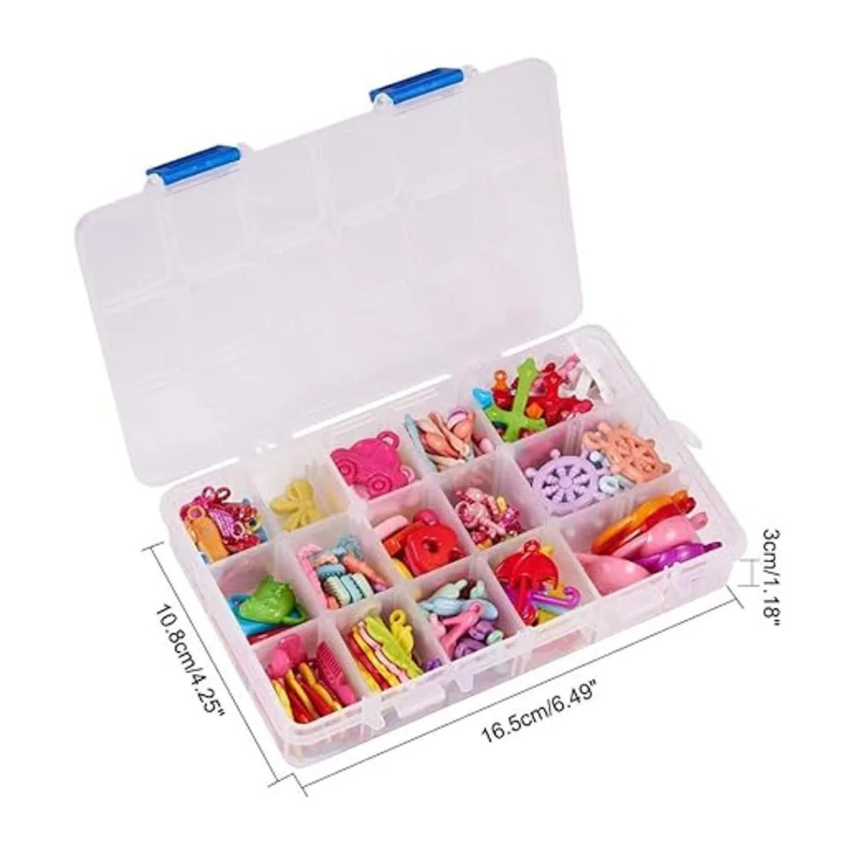 Con contenedores: todos los artículos están muy bien organizados en caja de plástico transparente. Caja perfecta para cuentas u otros accesorios de joyería, conveniente de usar.