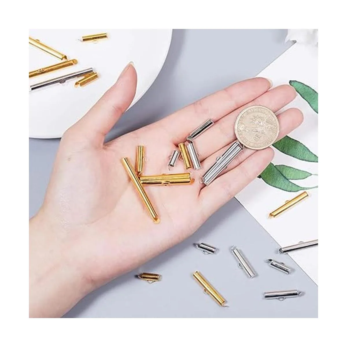 PH PandaHall 240 tubos de cierre deslizante, tapas de extremo deslizantes, tubo de extremo de engarzado, cierre deslizante para telar de cuentas, barra de extremo de tubo deslizante para collar de múltiples hebras, pulseras, joyería, oro platino, 10 ~ 1.575 in