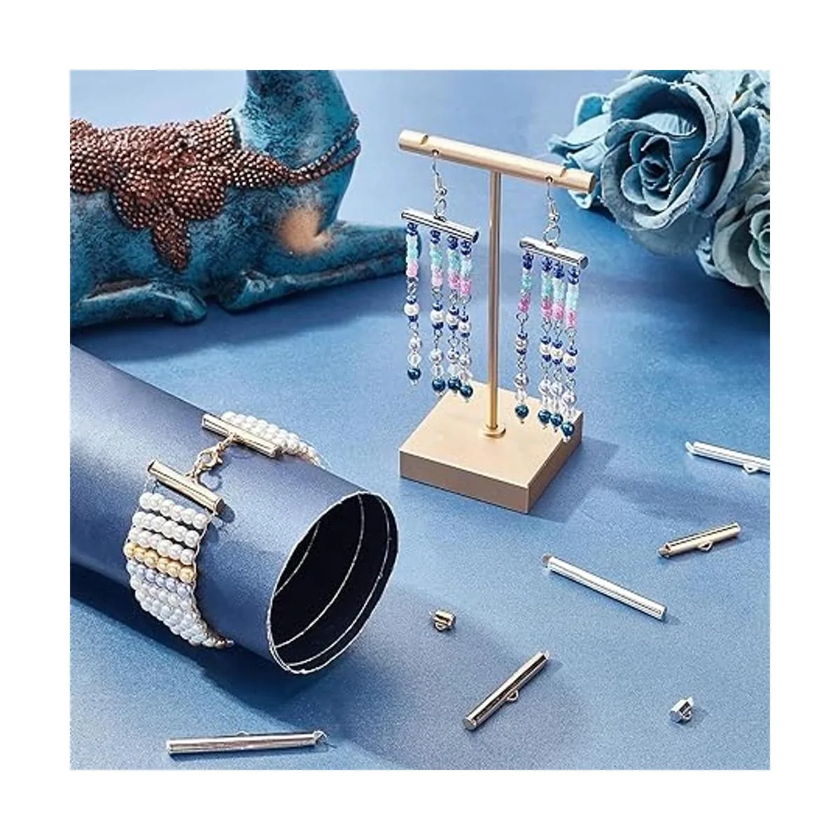 PH PandaHall 240 tubos de cierre deslizante, tapas de extremo deslizantes, tubo de extremo de engarzado, cierre deslizante para telar de cuentas, barra de extremo de tubo deslizante para collar de múltiples hebras, pulseras, joyería, oro platino, 10 1.575 in
