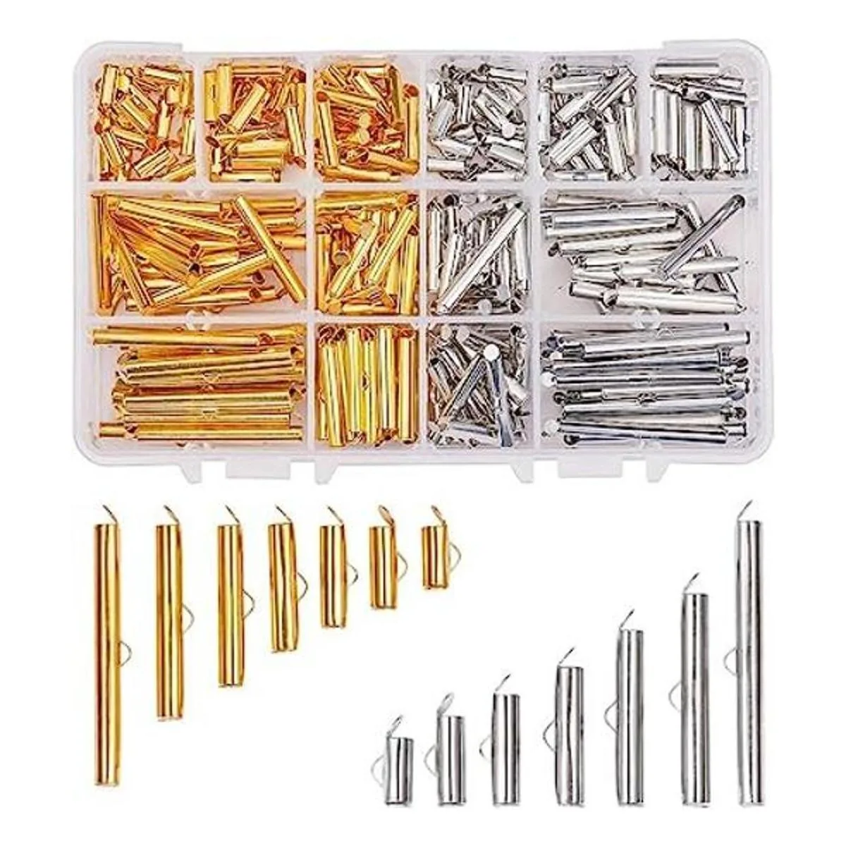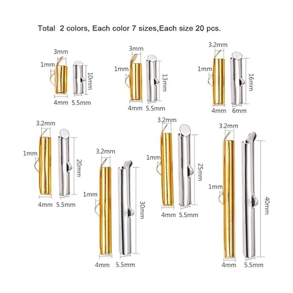 El paquete incluye: 20 piezas de cada color, 40 piezas de cada tamaño, 240 deslizadores en los extremos cierres totalmente; color: platino, dorado, hecho de hierro de alta calidad, duradero y se puede utilizar durante mucho tiempo. Perfecto para terminar tu pieza de joyería.