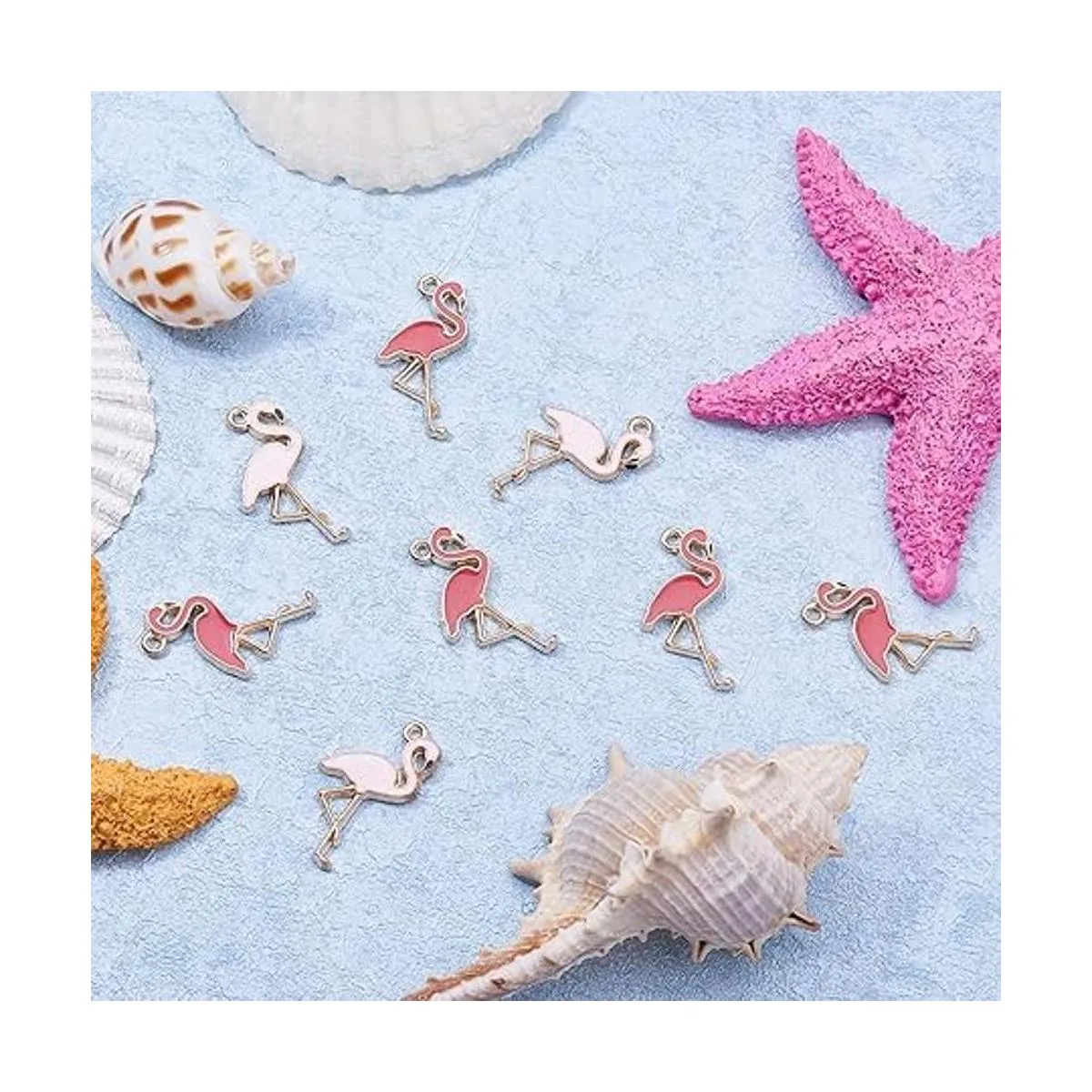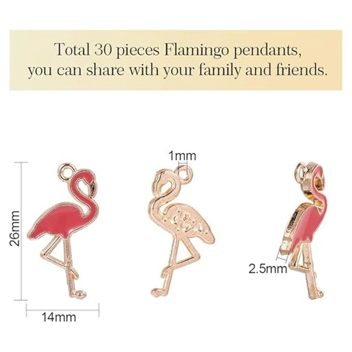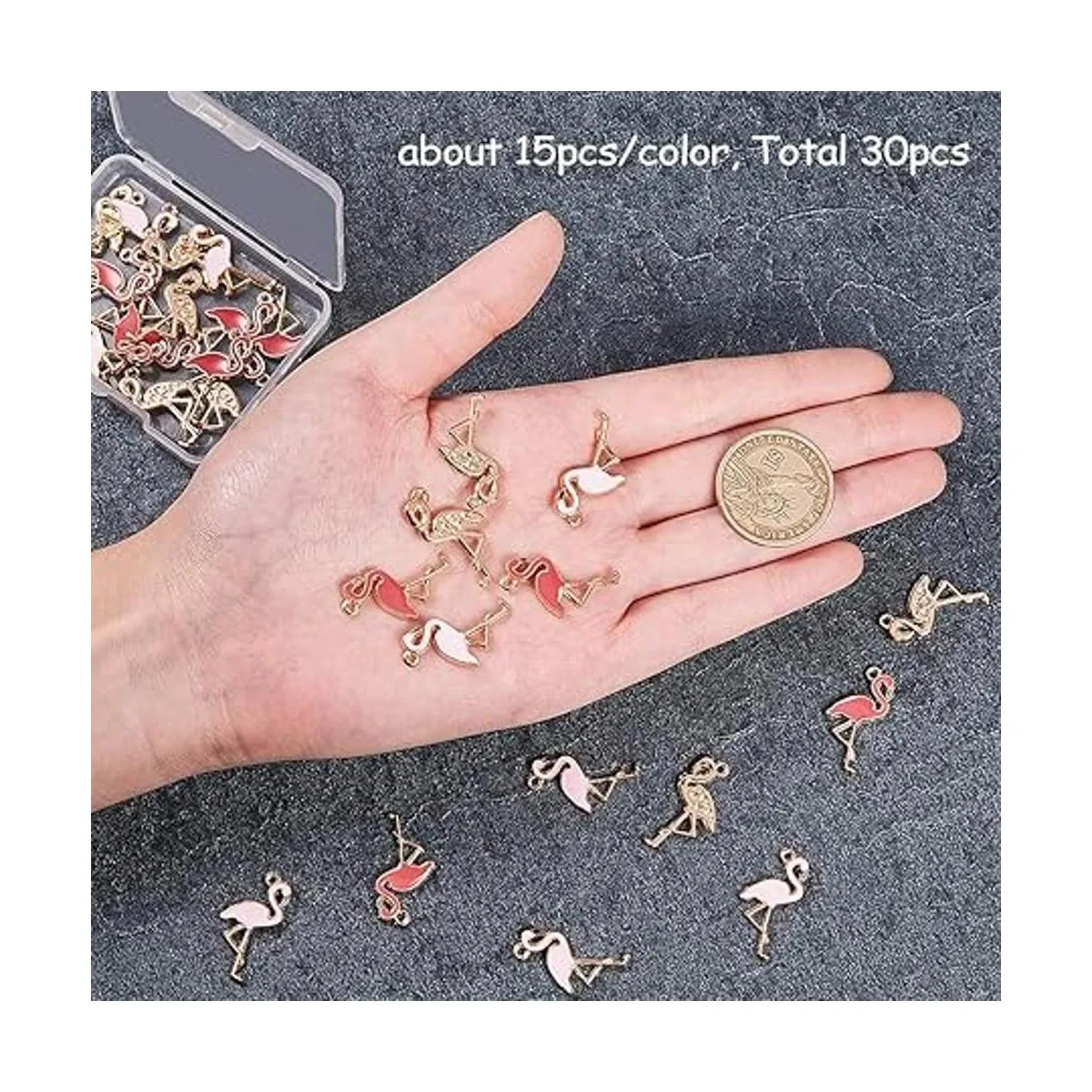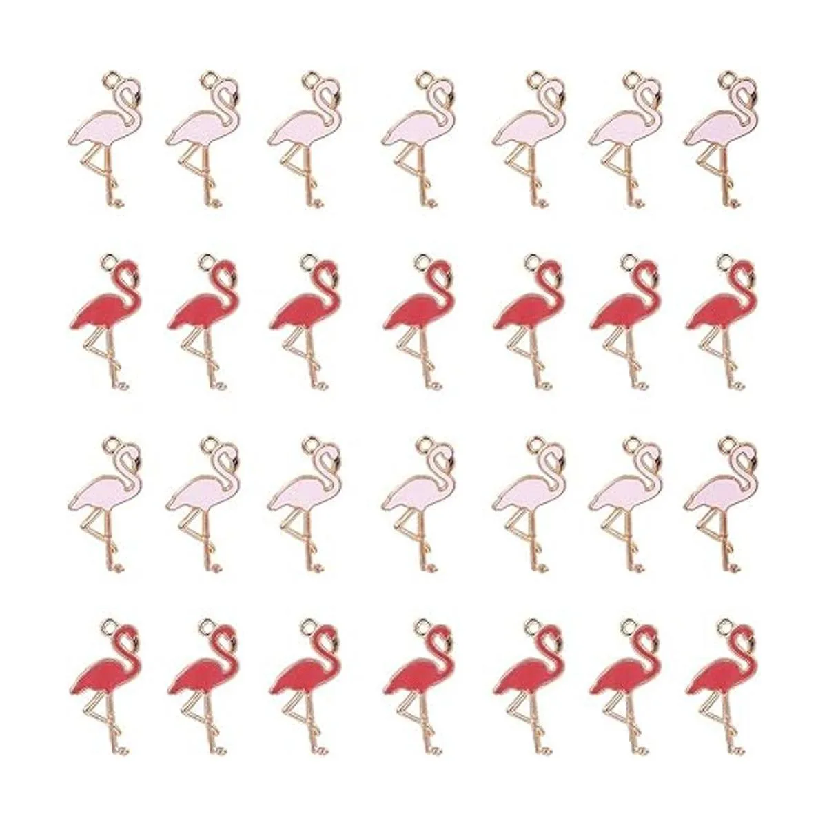 PH PandaHall 30 colgantes de flamenco, diseño de flamenco, color rosa, rojo, aleación de color rosa, para el día de San Valentín, pulsera de bricolaje, collar y pendientes
