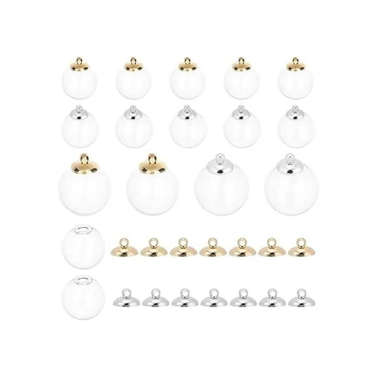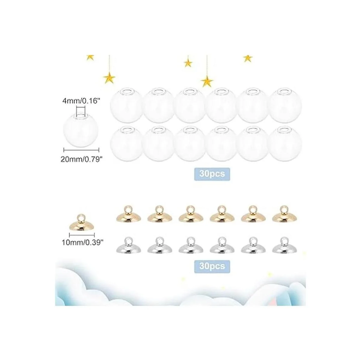 PH PandaHall 30 piezas de 0.787 in, mini botellas de cristal transparente de 564 pulgadas, adornos transparentes, colgantes de bola para hacer aretes, Navidad, hogar, vacaciones, decoración de boda, tapa de 0.394 in plata, dorado