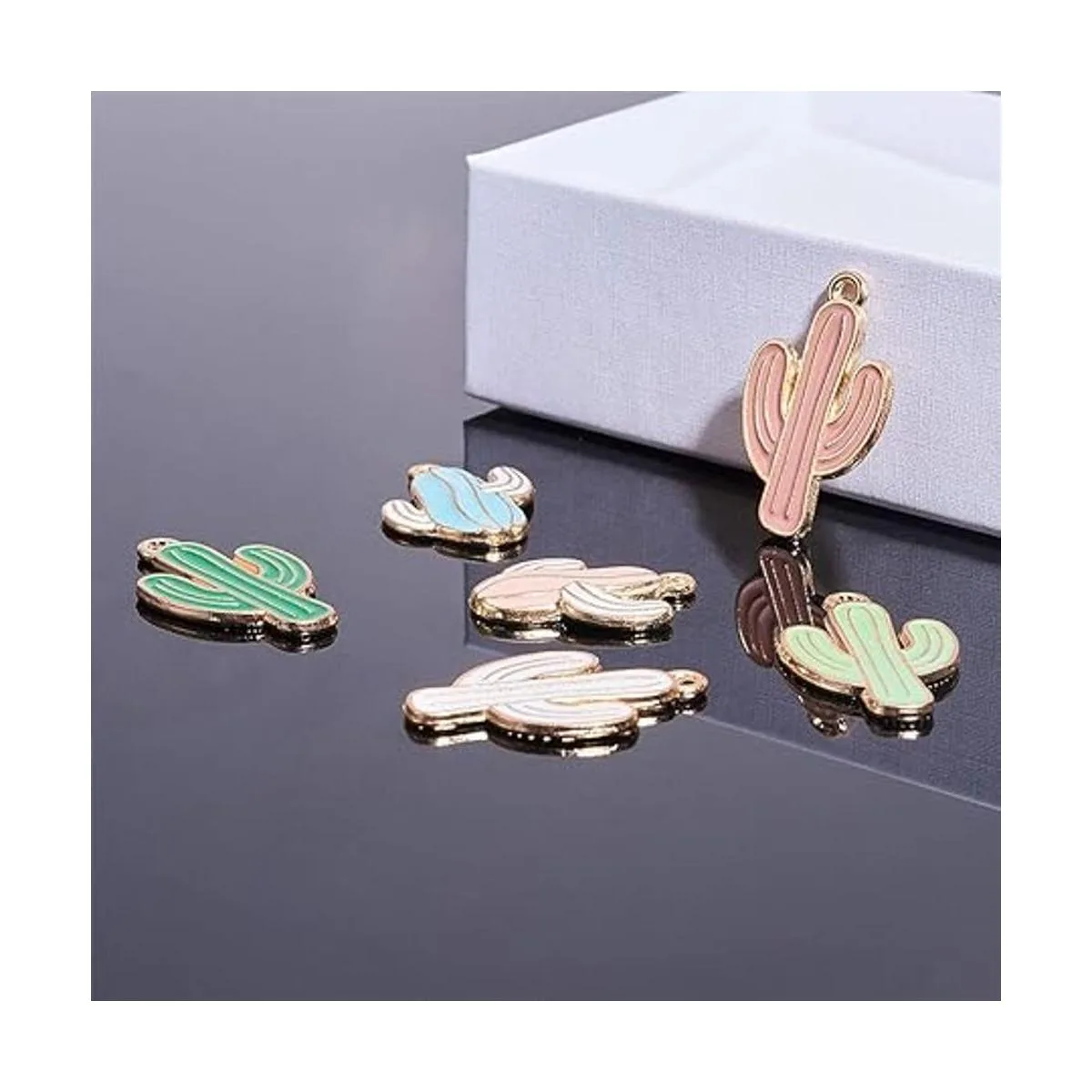 PH PandaHall 36 colgantes de cactus de 6 colores con colgante de esmalte de plantas del desierto de verano tropical colgantes de cuentas suculentas colgantes para collar, pulsera, aretes, fabricación de joyas