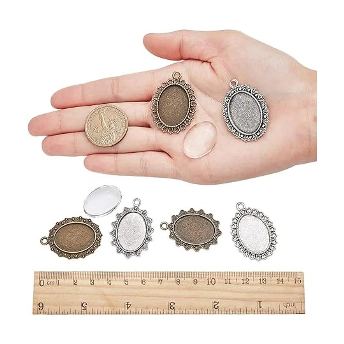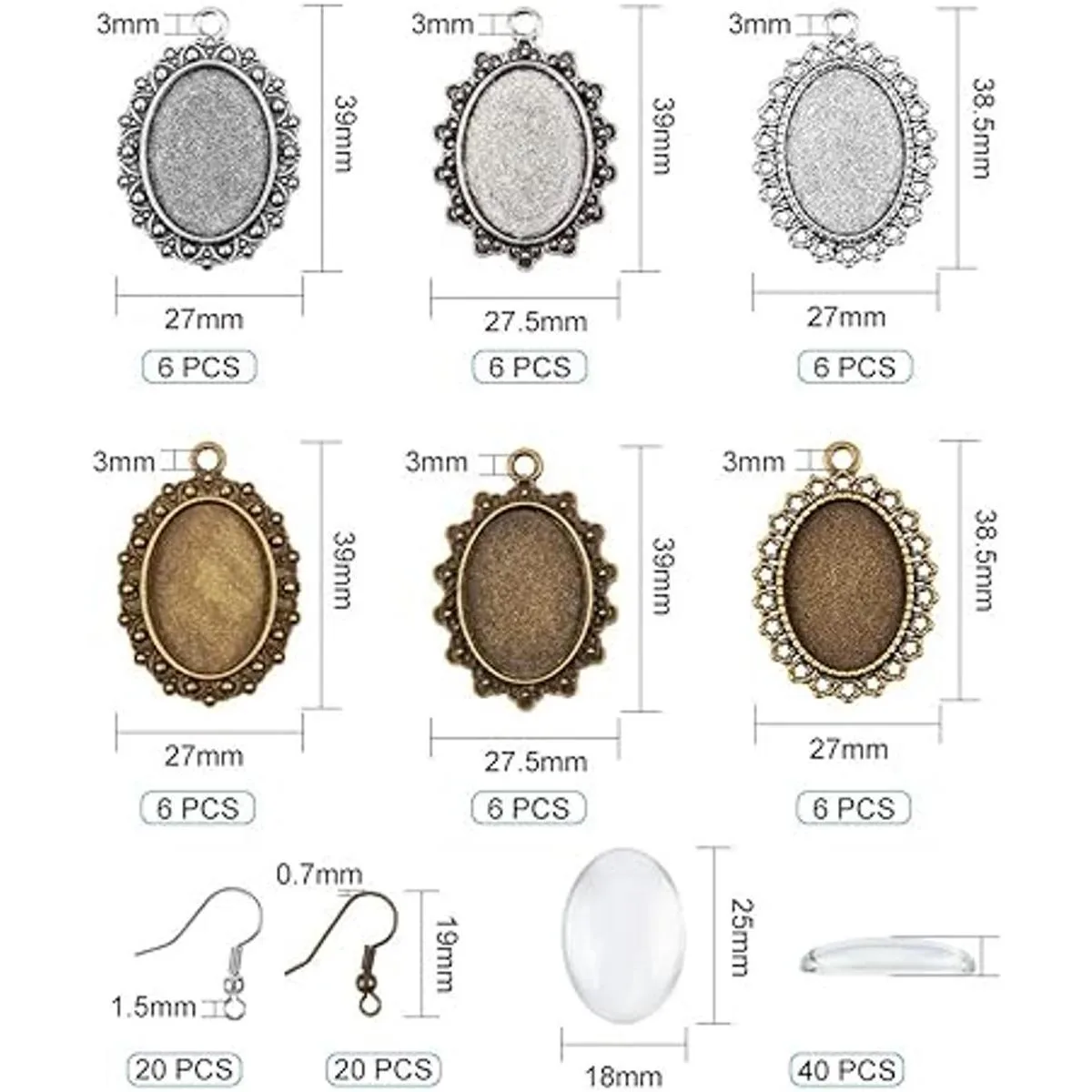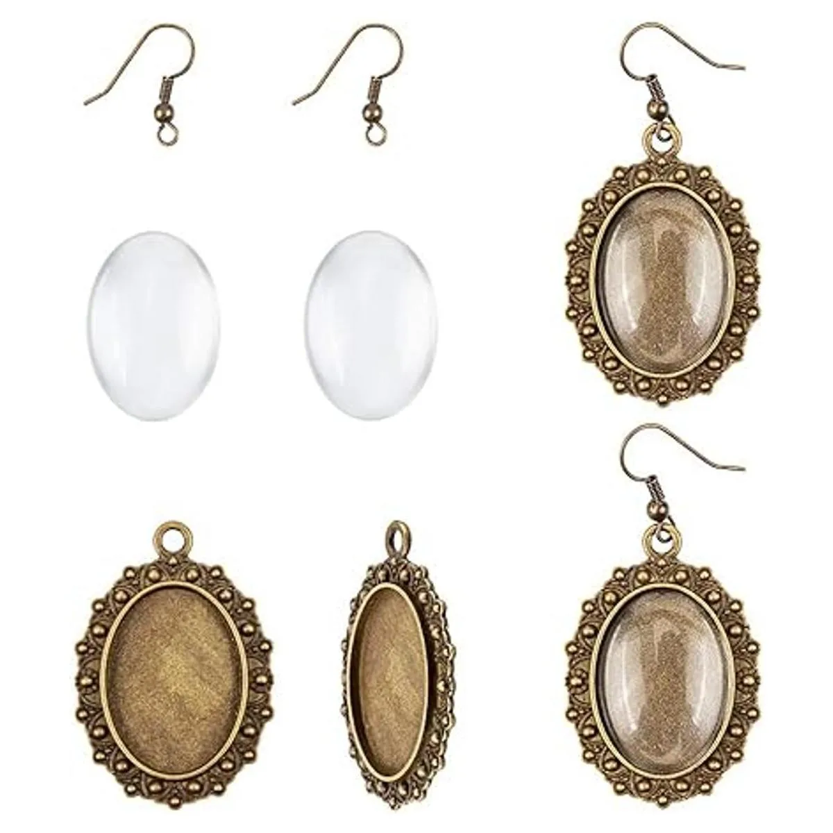 PH PandaHall 36 juegos de biseles de bandeja para pendientes, 3 estilos, 36 piezas, ajustes de cabujón de aretes, 40 cabujones de cristal transparente ovalados y 40 ganchos de latón para aretes para mujer, fabricación de joyas