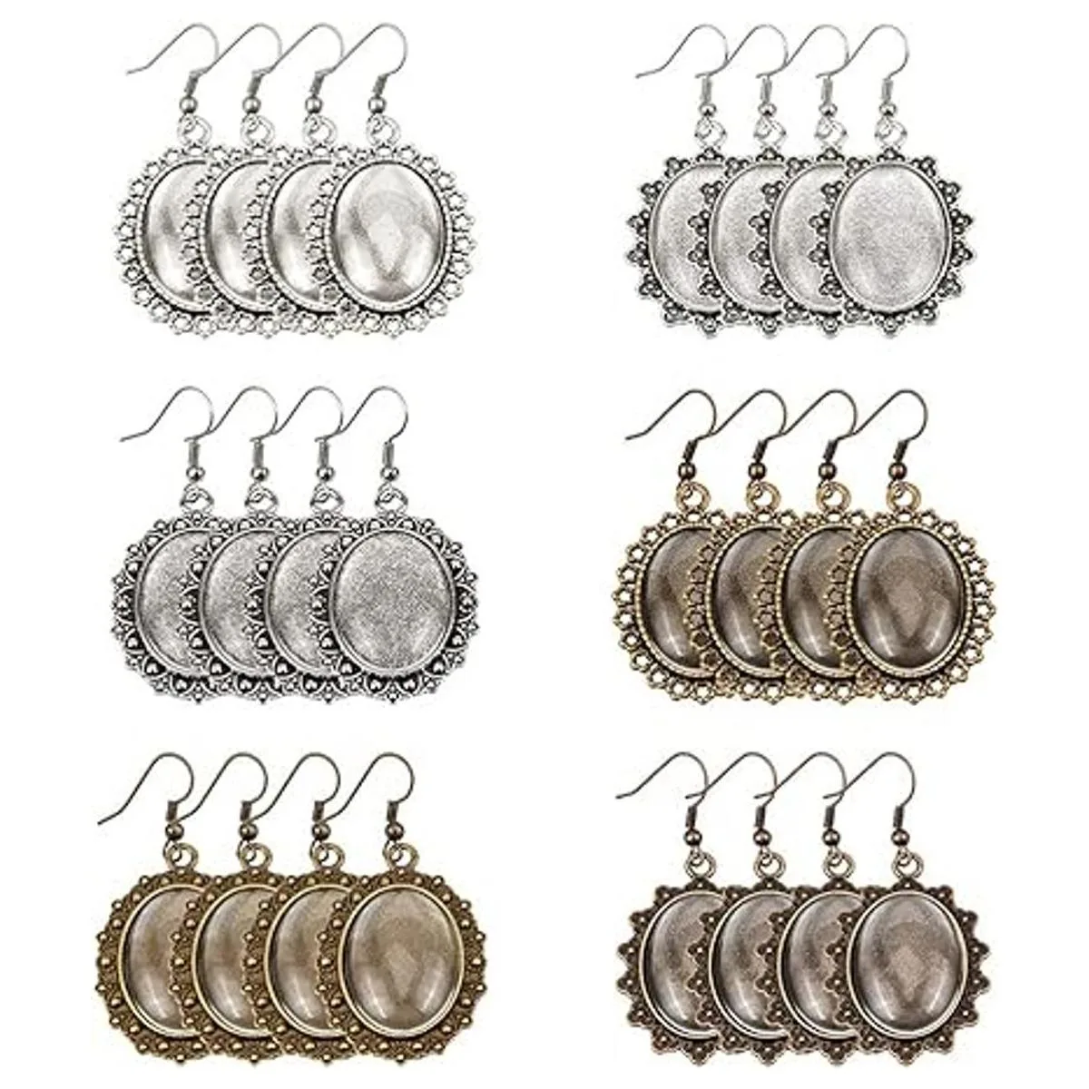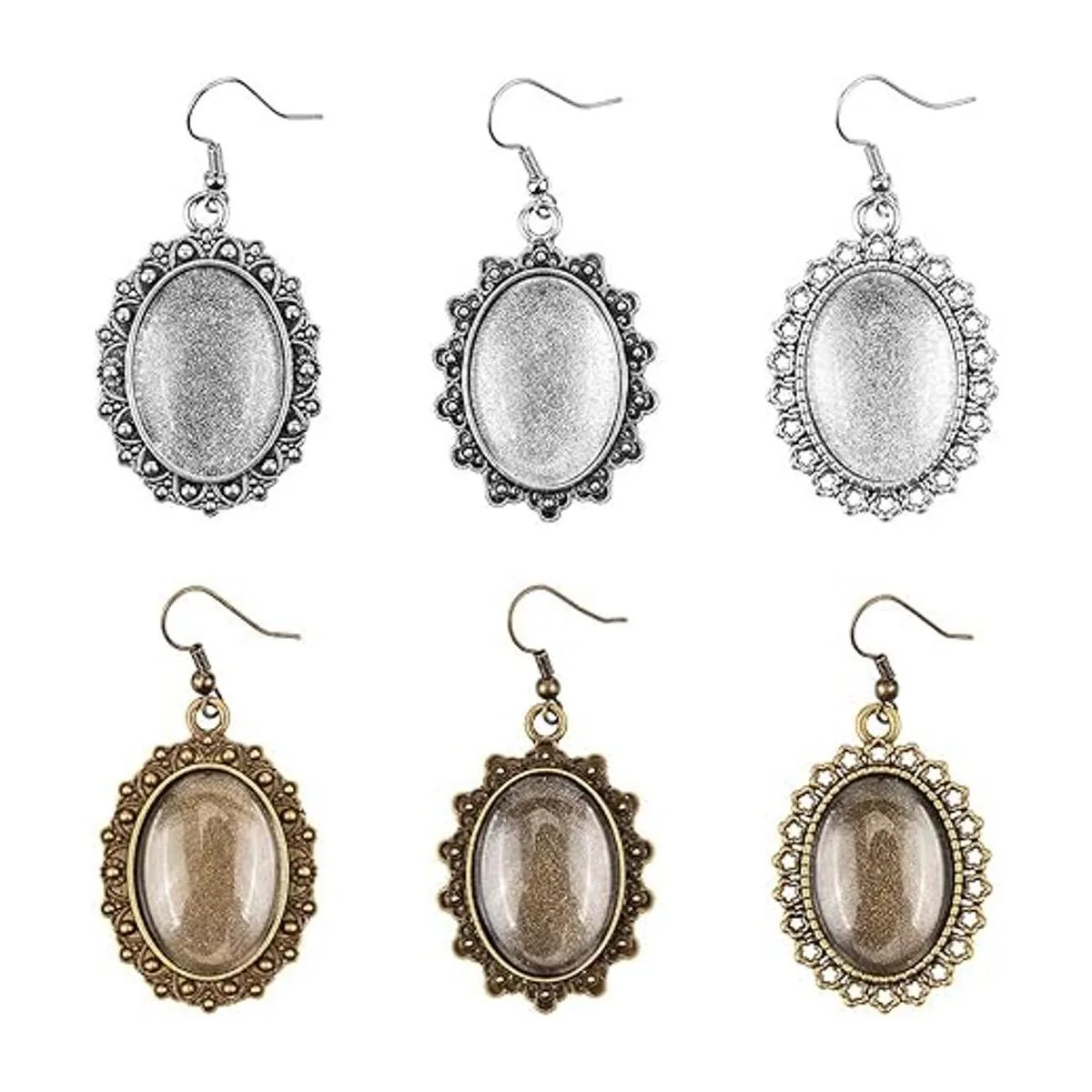 3 estilos de aretes en blanco: bandeja de 0.984 x 0.709 in, agujero de 0.118 in, diferentes estilos te ofrecen más opciones. Con cabujón ovalado 0.984 x 0.709 x 0.197 in, 40 ganchos para aretes 0.748 in de largo, pin: 0.028 in, agujero: 0.059 in