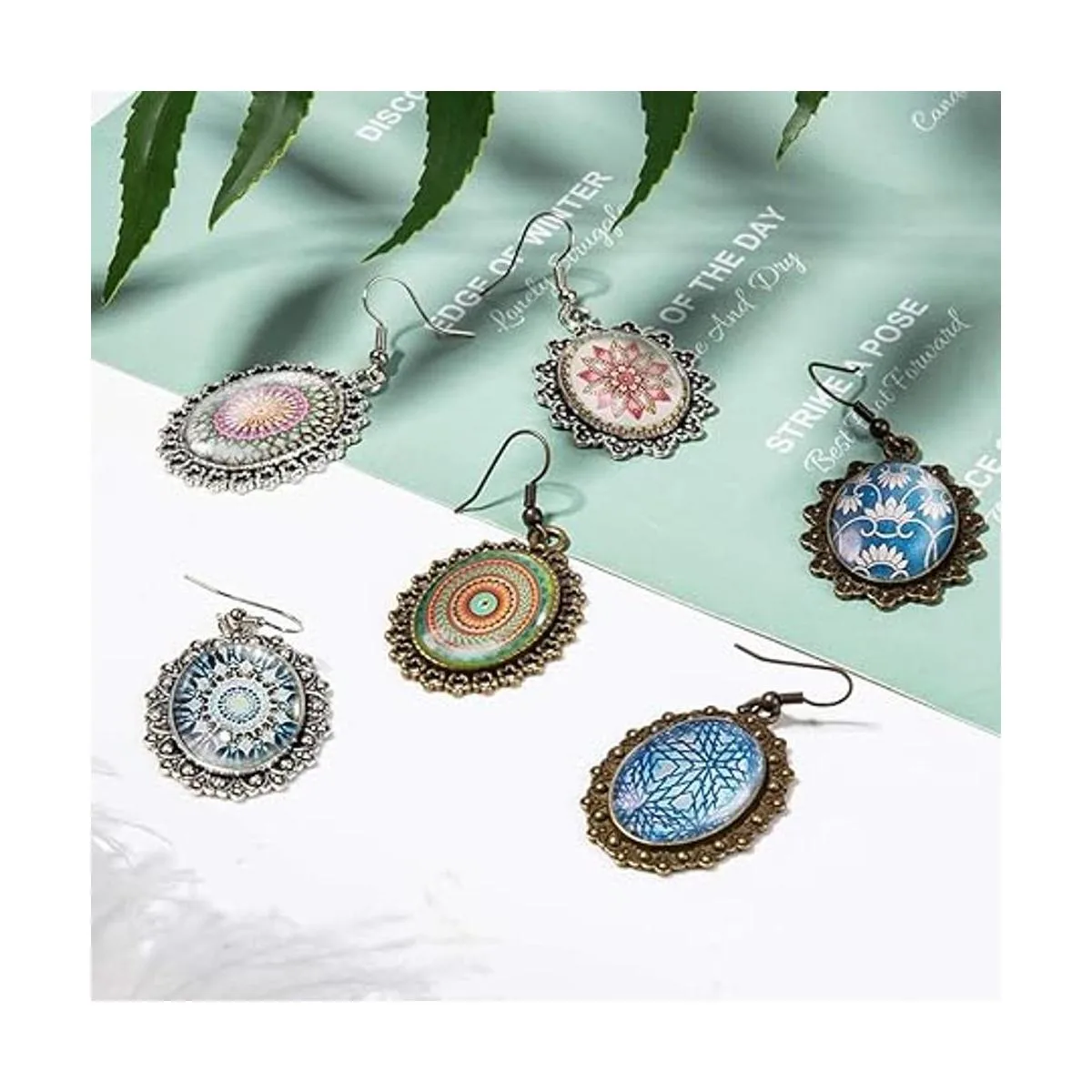 Listo para hacer pendientes: simplemente añade hermosas imágenes y fotos preciosas a los cabujones, luego pégalo en la bandeja de biseles de aretes en blanco, luego se terminarán unos delicados aretes de gancho francés