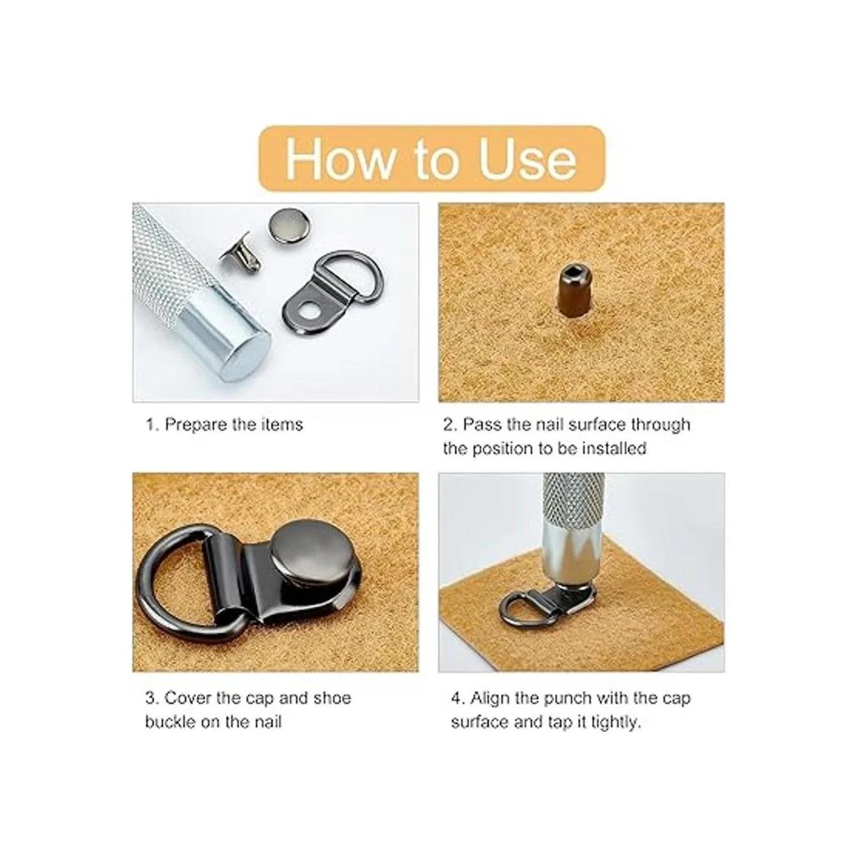 Amplia gama de aplicaciones: ajuste para hebilla de cordones de botas de escalada, conector de correas de bolso, fabricación de bolsos de mano, etc. El remache de hebilla con ojales es un accesorio básico para hacer zapatos de alta calidad, cuero, bolsos, etc.