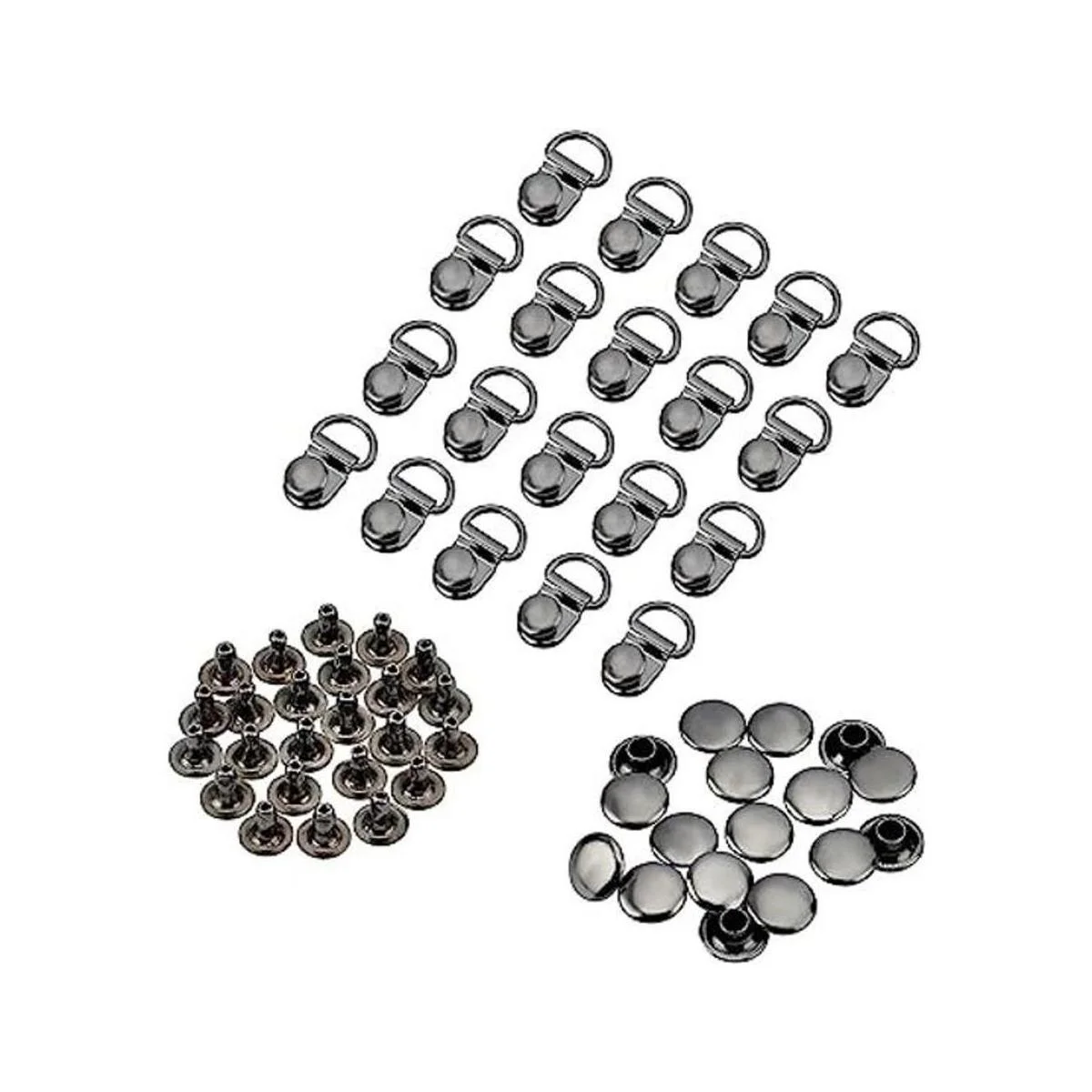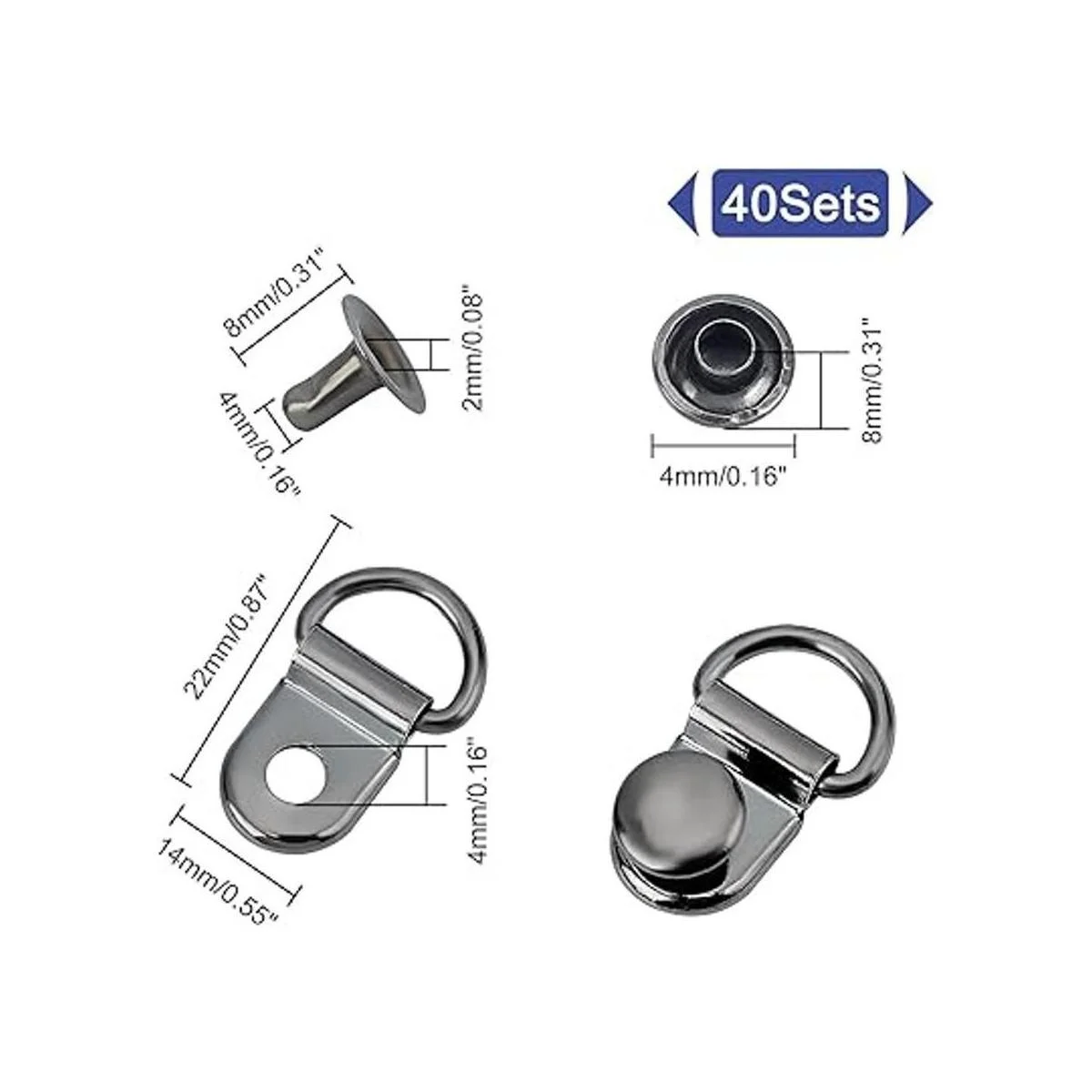 40 ganchos de cordones para botas: el paquete incluye 40 juegos de hebillas de encaje de zapatos, cada juego incluye gancho de anilla en D, remache y cubierta de botón, las tres partes necesitan ser utilizadas juntas y están divididas en cajas.