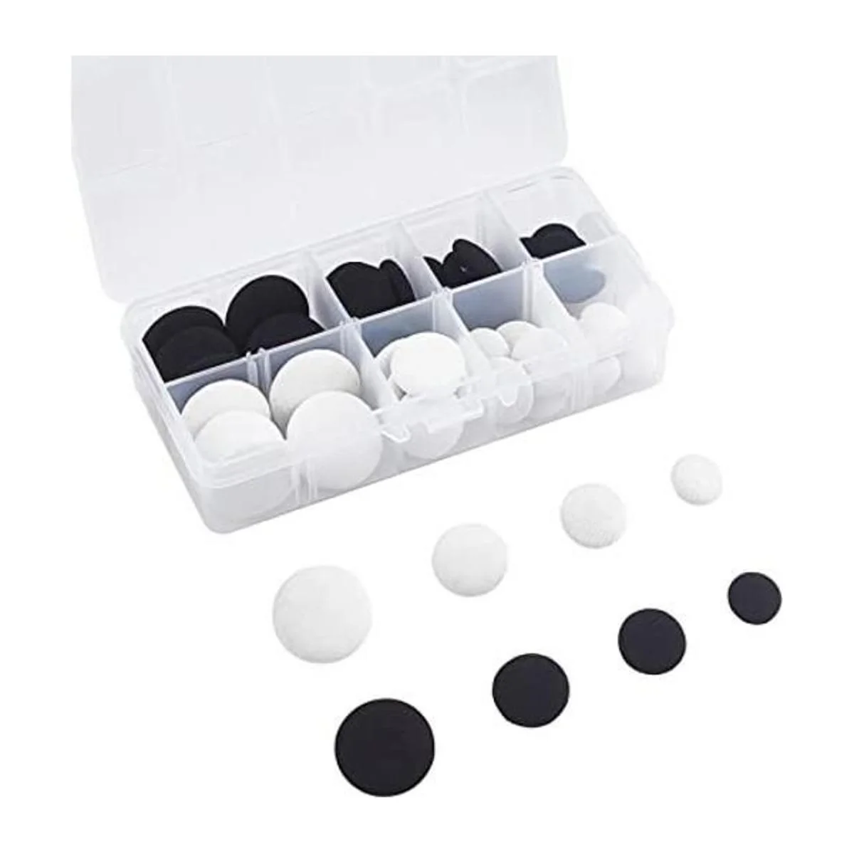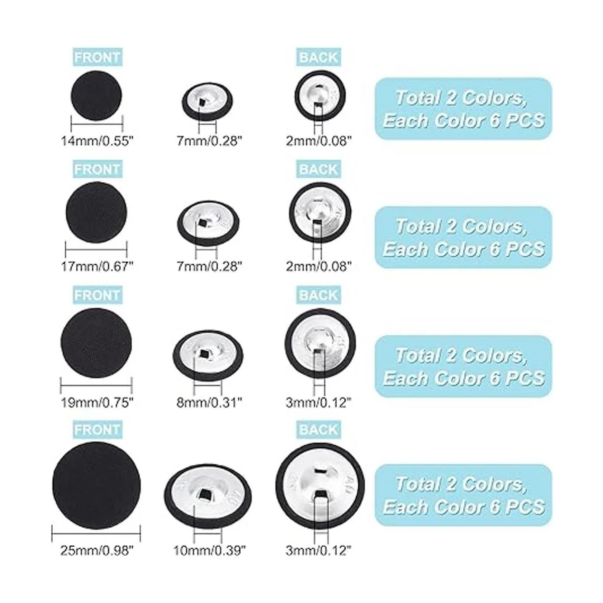 PH PandaHall 48 botones de tela con respaldo plano de 4 tamaños, color negro y blanco, botones para manualidades, para trajes de vestidos, blusas y camisas de costura 0.551 in, 0.669 in, 0.748 in, 0.984 in
