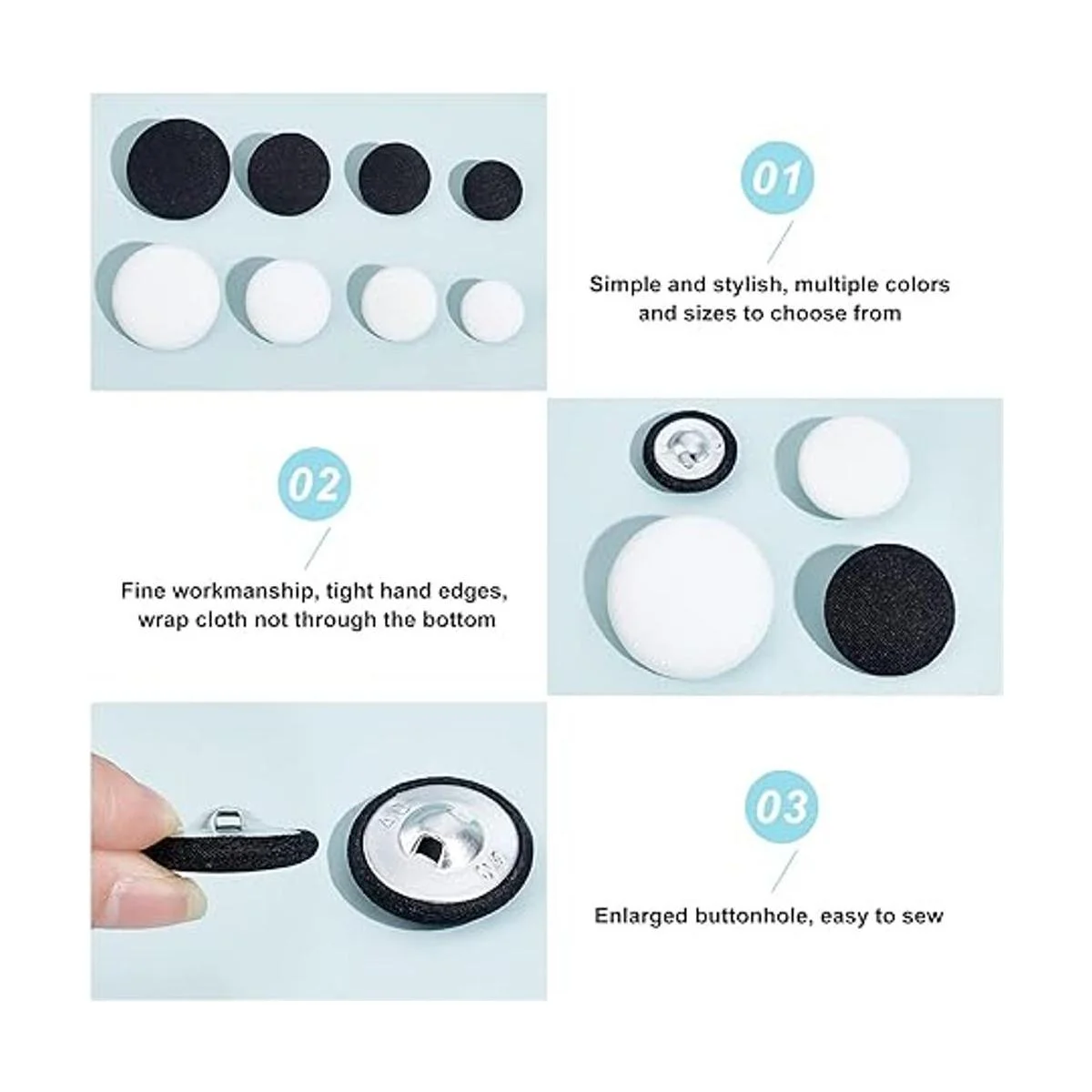 Material premium: los botones cubiertos de tela están hechos de aleación de calidad cubierta con tela, no es fácil de romper o dañar, duradero para servirte durante mucho tiempo.