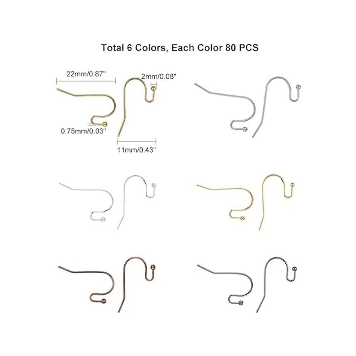 PH PandaHall 480 ganchos de aretes franceses de 6 colores, alambre de oreja de bola, puntos colgantes de aretes, aros y aros para hacer aretes, suministros para mujeres y hombres