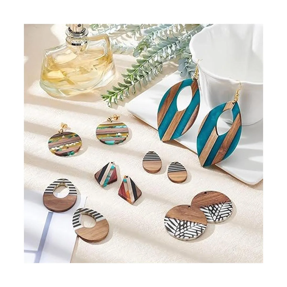 Resina y material natural: todos los colgantes están hechos de madera de nogal natural y resina de forma uniforme; el proceso de pulido elaborado hace que los colgantes sean ligeros, suaves y texturizados.