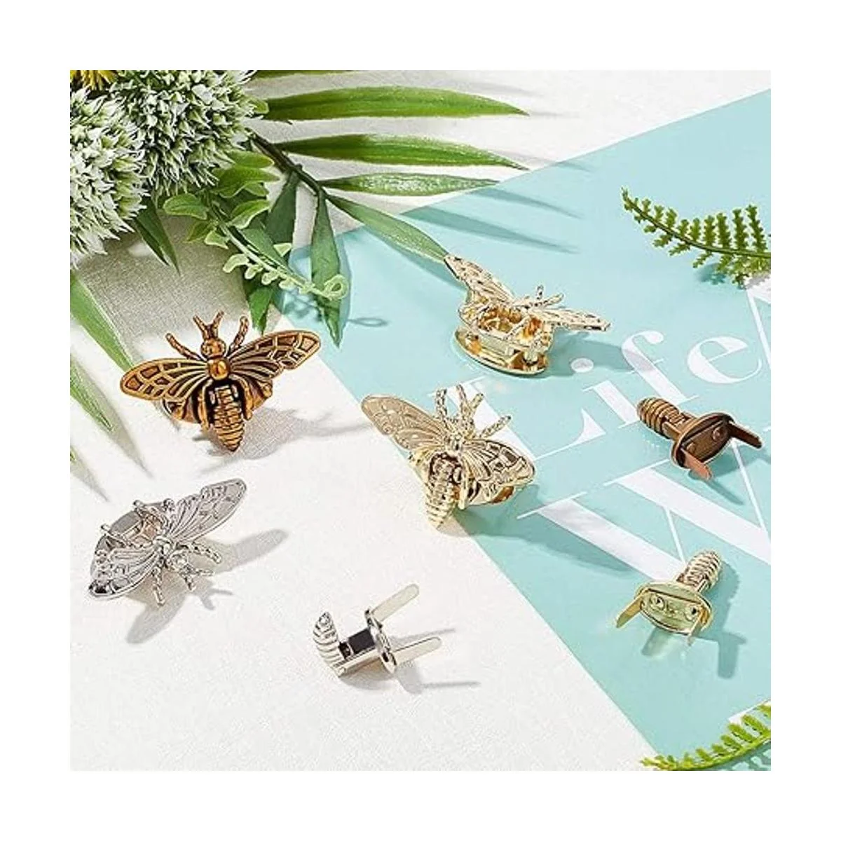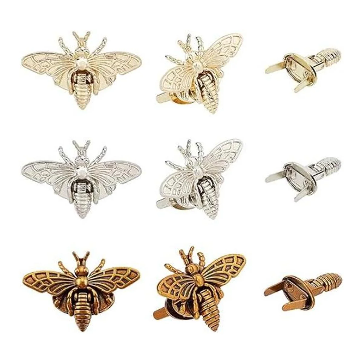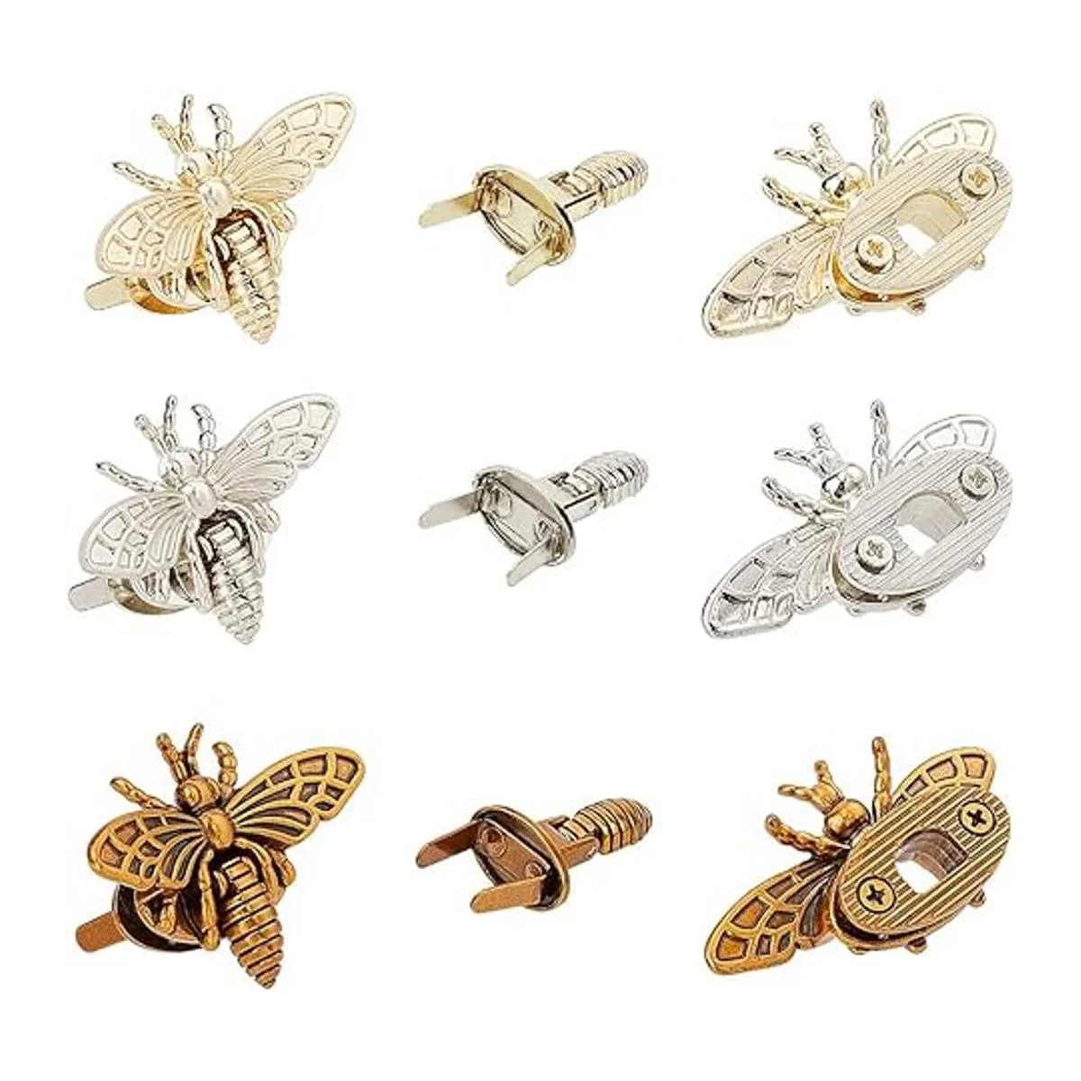 PH PandaHall 6 juegos de 3 colores de cierre torcido de abeja, color dorado claro, cierre de bolsa, accesorios para bolsa de cuero DIY, bronce antiguoplatinooro claro