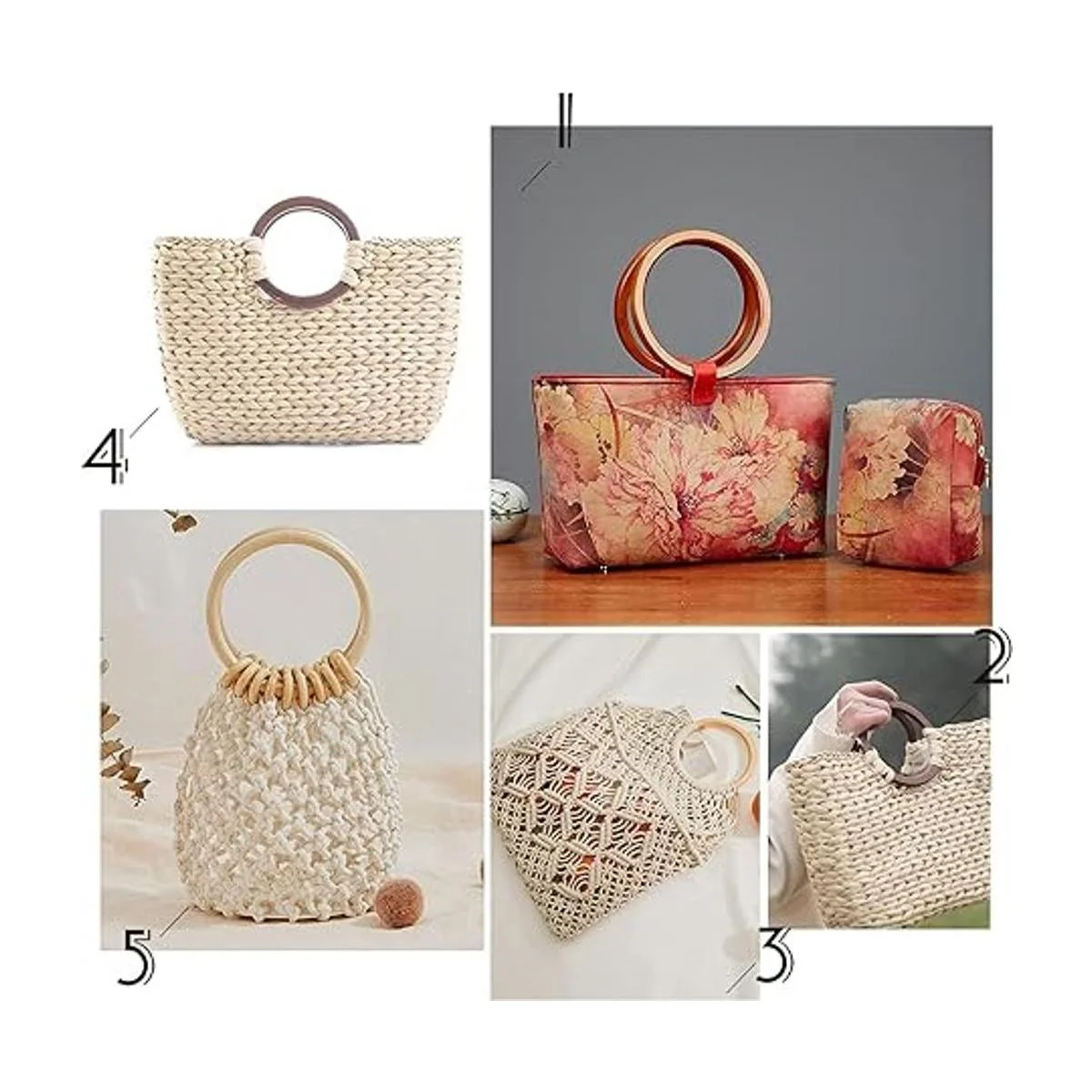 Bolso de bricolaje: puedes utilizar el asa para bolsas de ganchillo o punto, hacer bolsas de ganchillo, ganchillo una bolsa de mercado, bolsa Furoshiki, bolso de ratán, bolsa de mano, bolsa de piel, bolsos de tela.