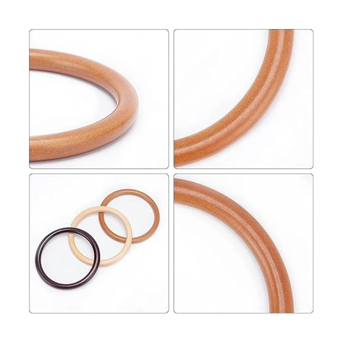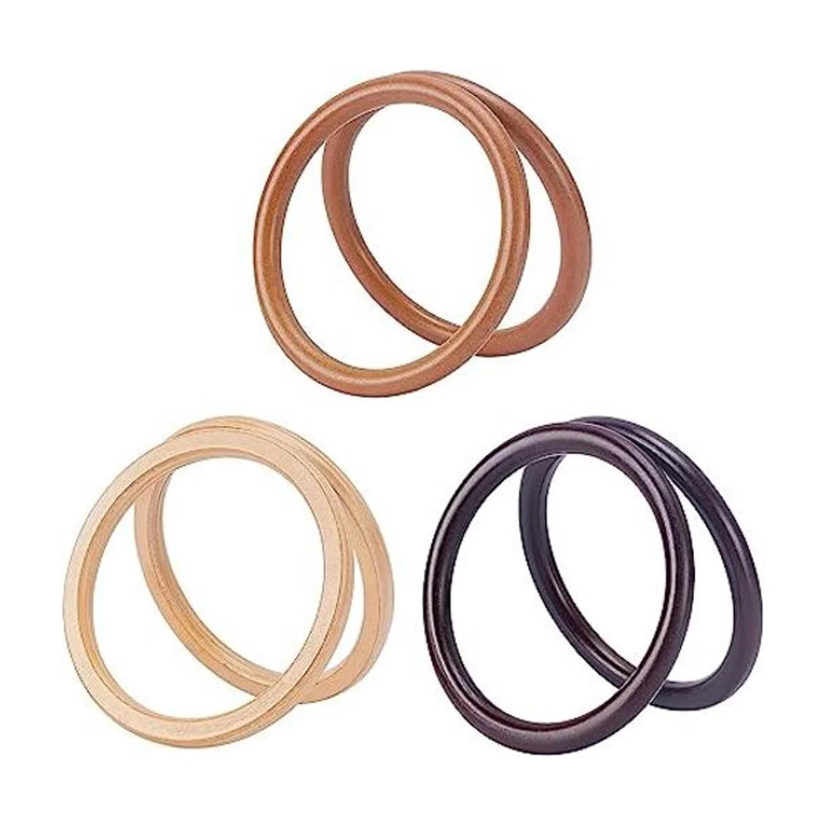 Combinación perfecta: madera lisa para un agarre cómodo, y estos anillos de madera circulares no tienen nudos enormes o puntos ásperos, fáciles de combinar con otros adornos, como bolsas de playa, bolsos de pajita.