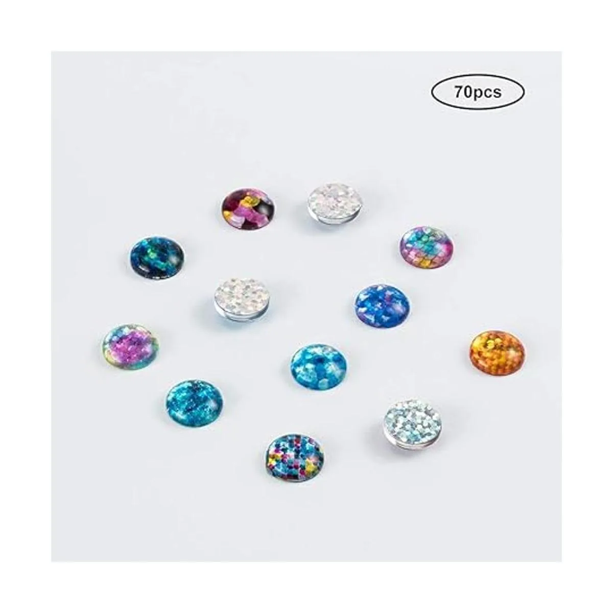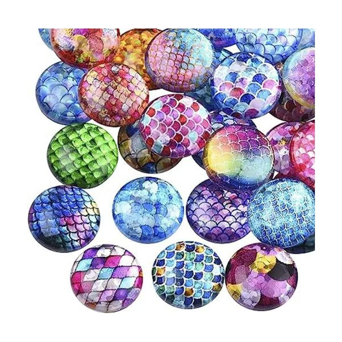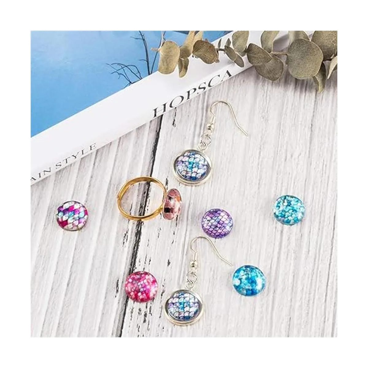 PH PandaHall 70 piezas de 35 estilos de sirena, escamas de cristal, cabujones planos de piel de pez de cristal, cabujones de cúpula para foto camafeo, colgante de joyería, manualidades, álbumes de recortes 0.472 in