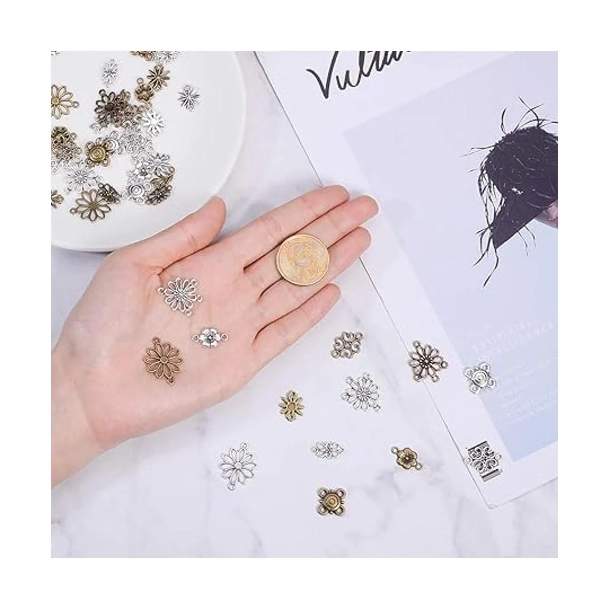 8 estilos 2 colores: hay 8 estilos de dijes de conector de flores en plata antigua y color bronce antiguo, satisface tus diferentes necesidades de proyectos de manualidades.