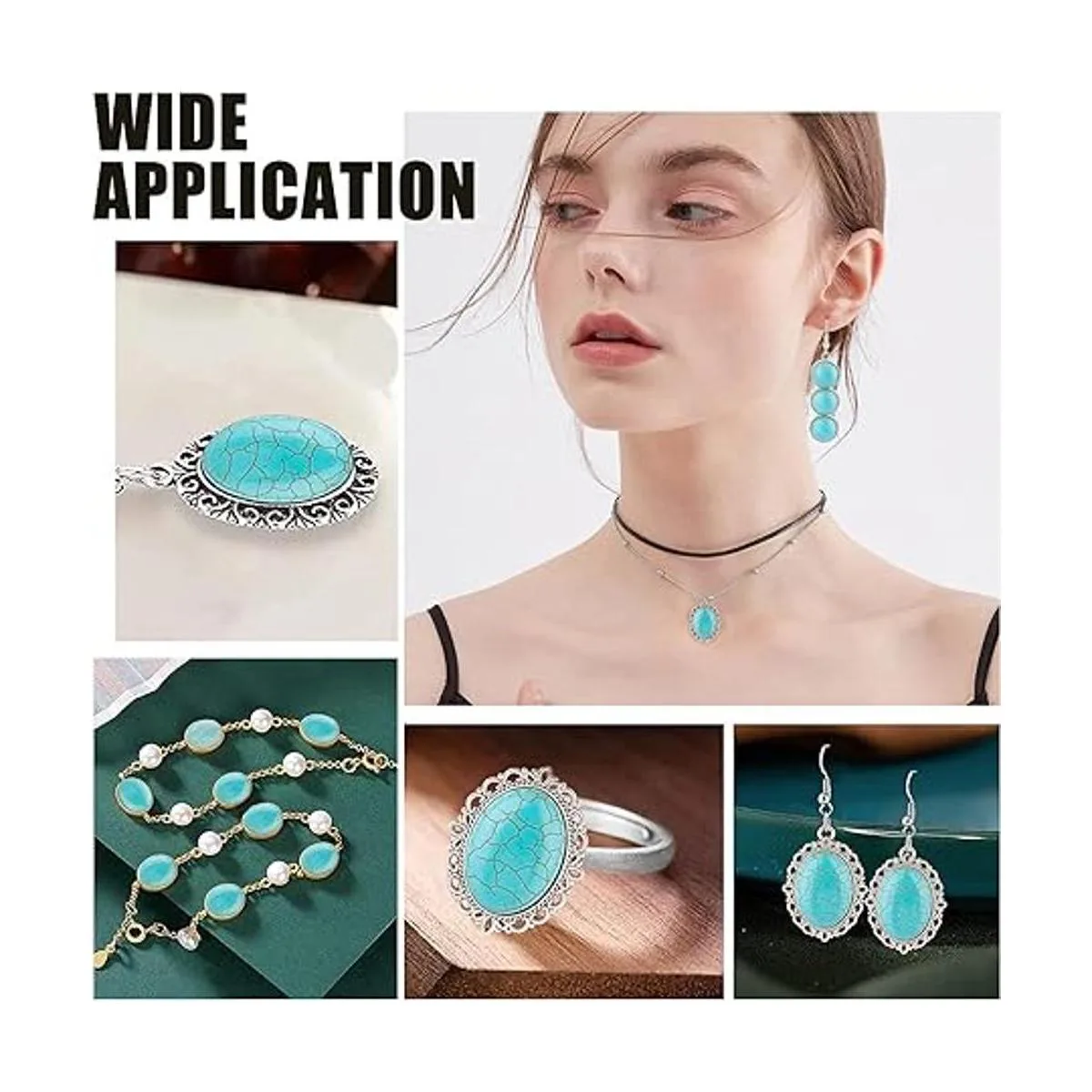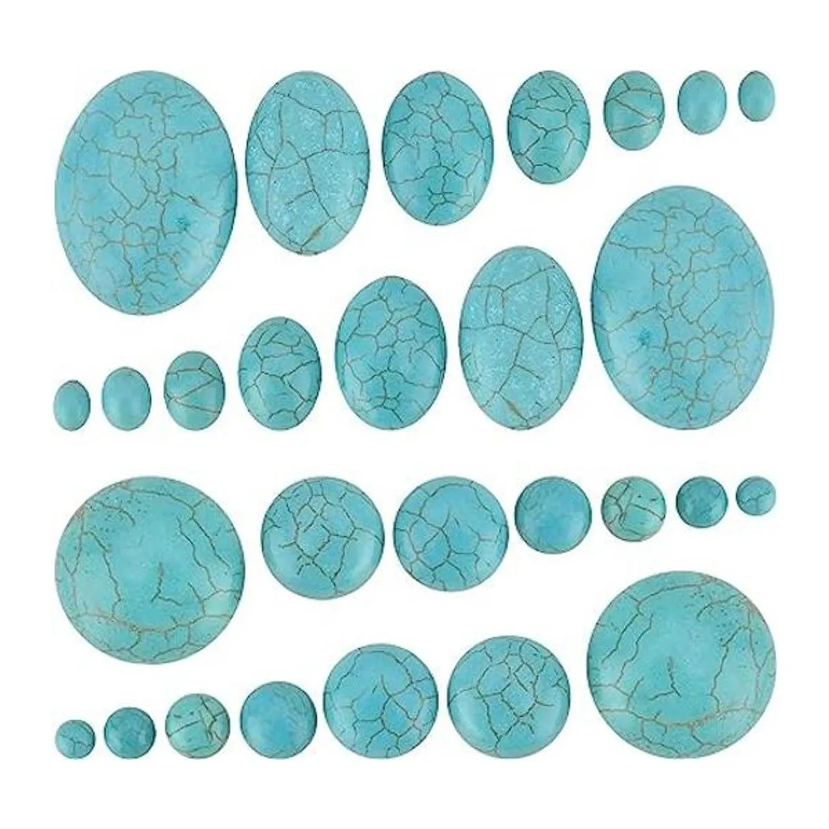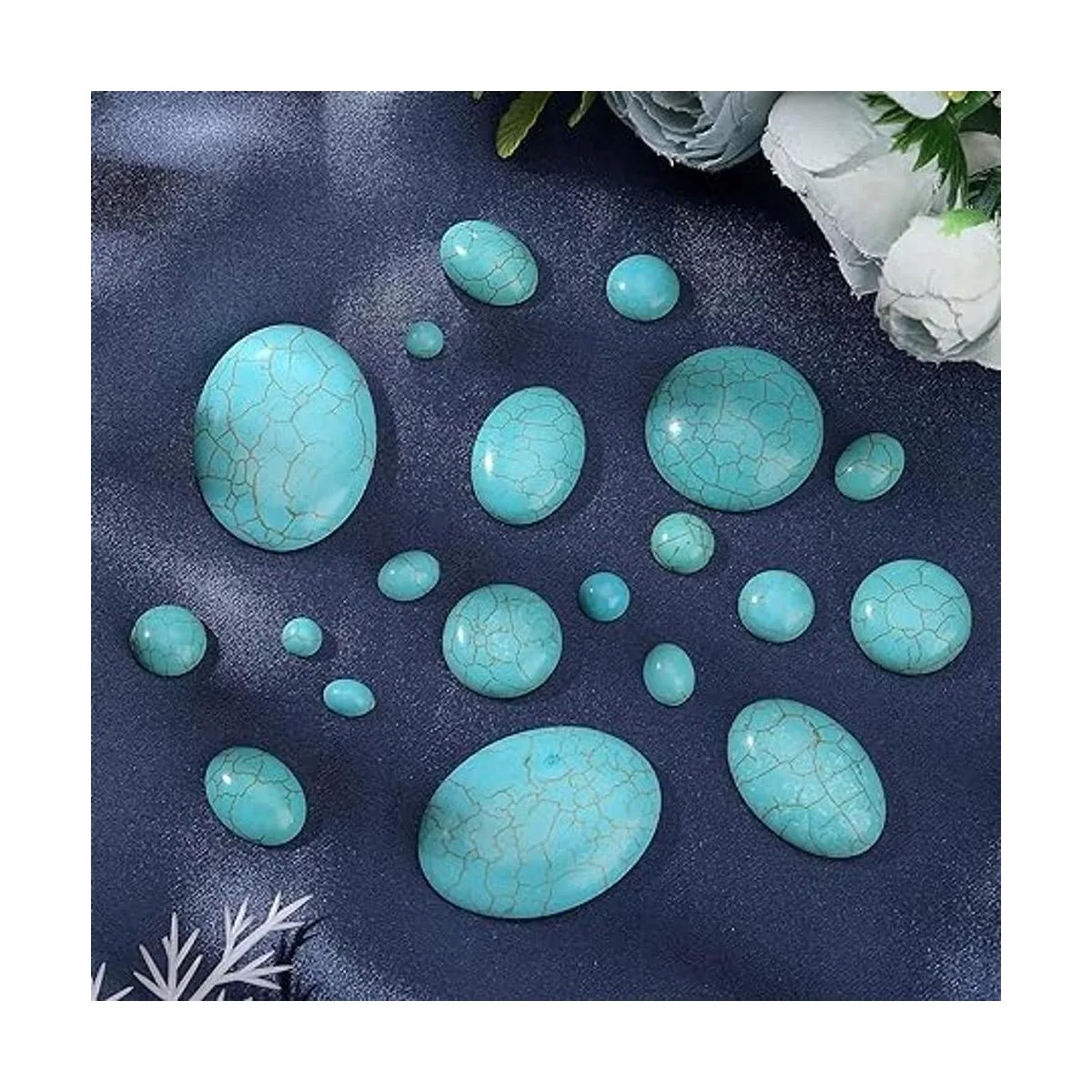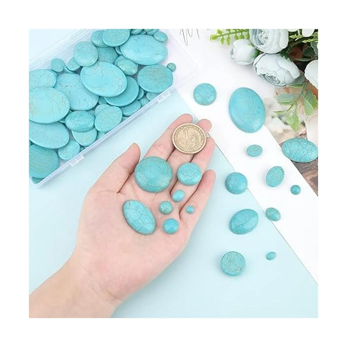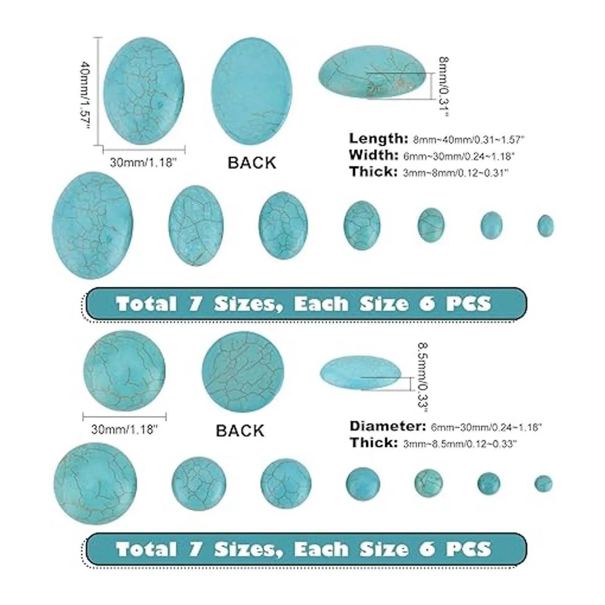 PH PandaHall 84 cabujones de piedra turquesa sintética, 7 tamaños, azulejos de piedras preciosas de textura azul, ovalados, planos, redondos, cúpula redonda, azulejos de cabujón de piedra para pulseras, collares, aretes, camafeo, fabricación de joyas, 6 1.575 in