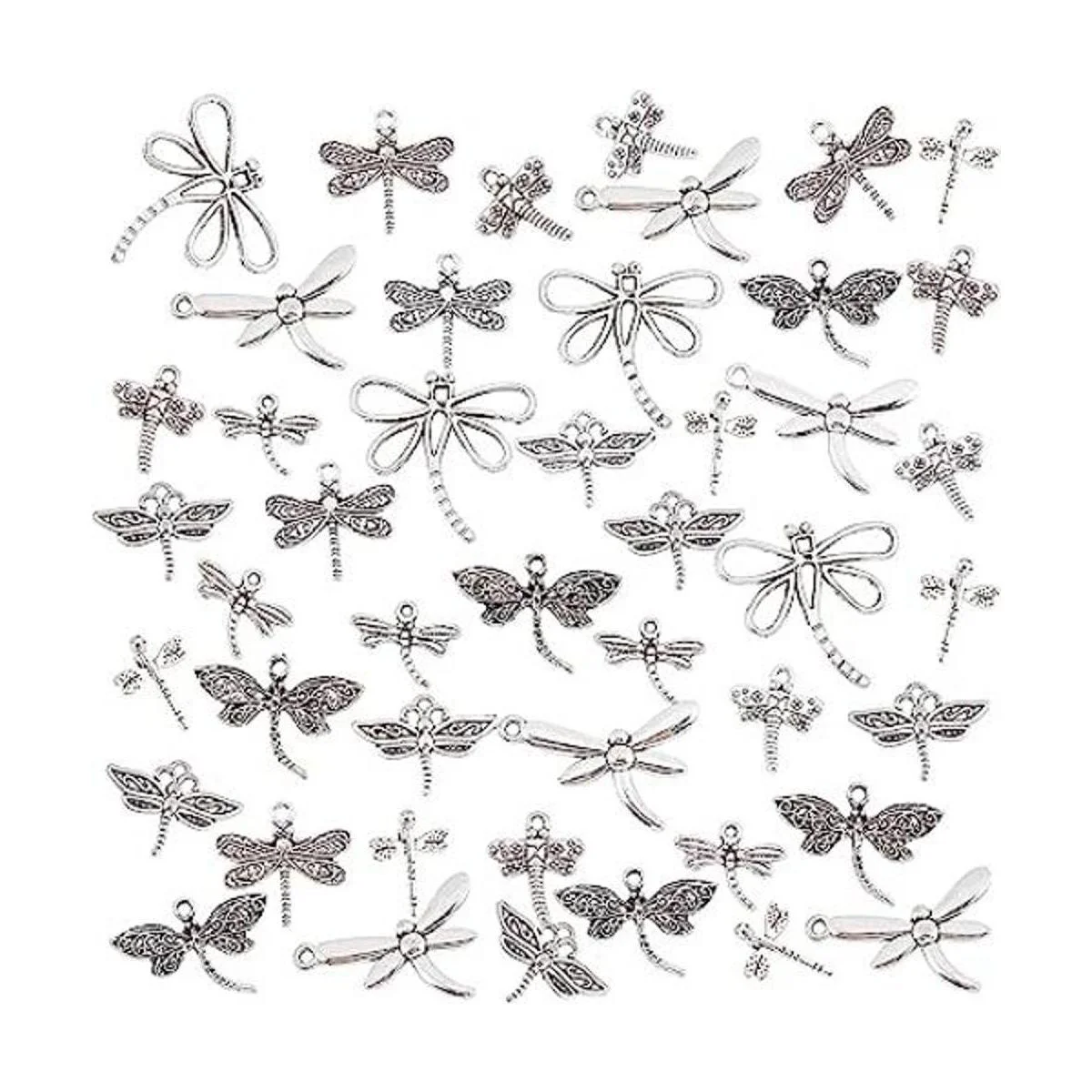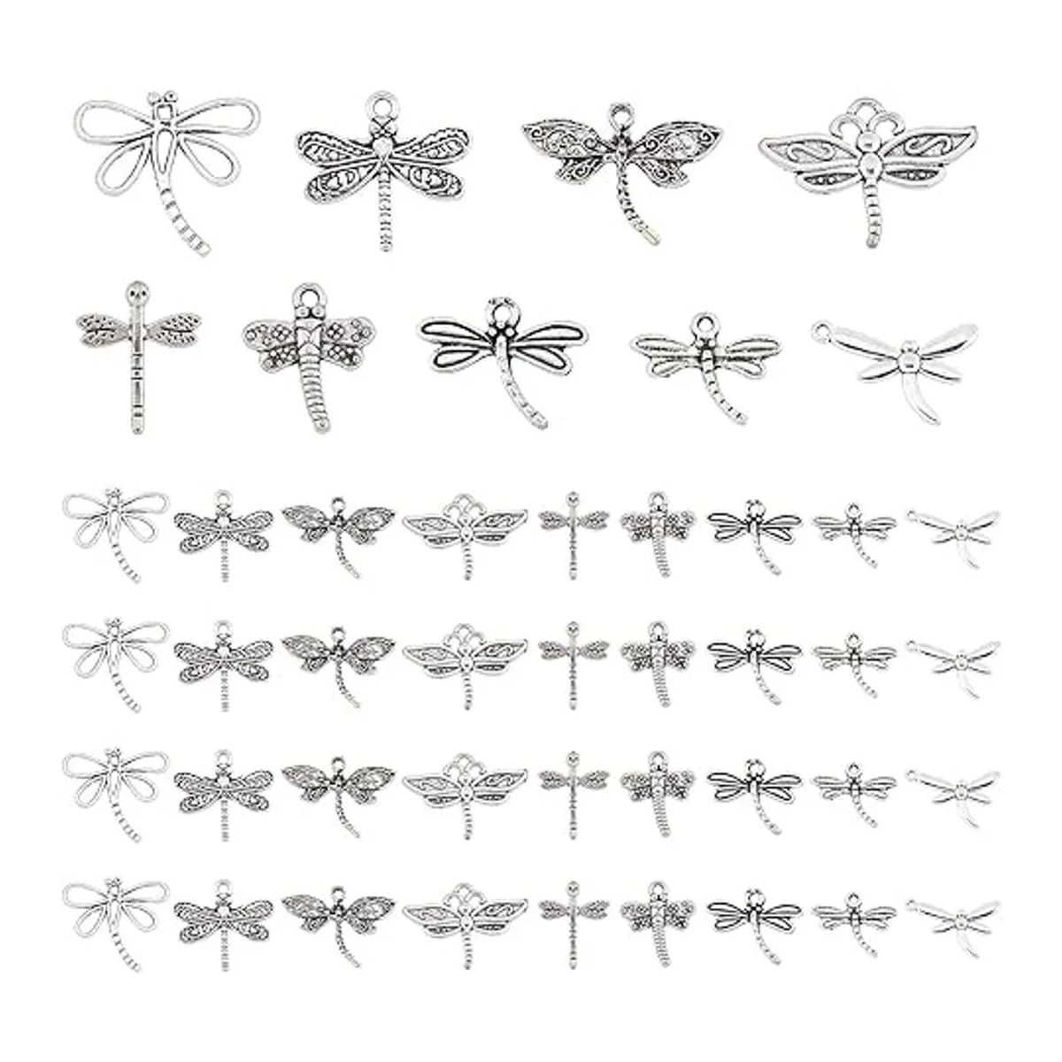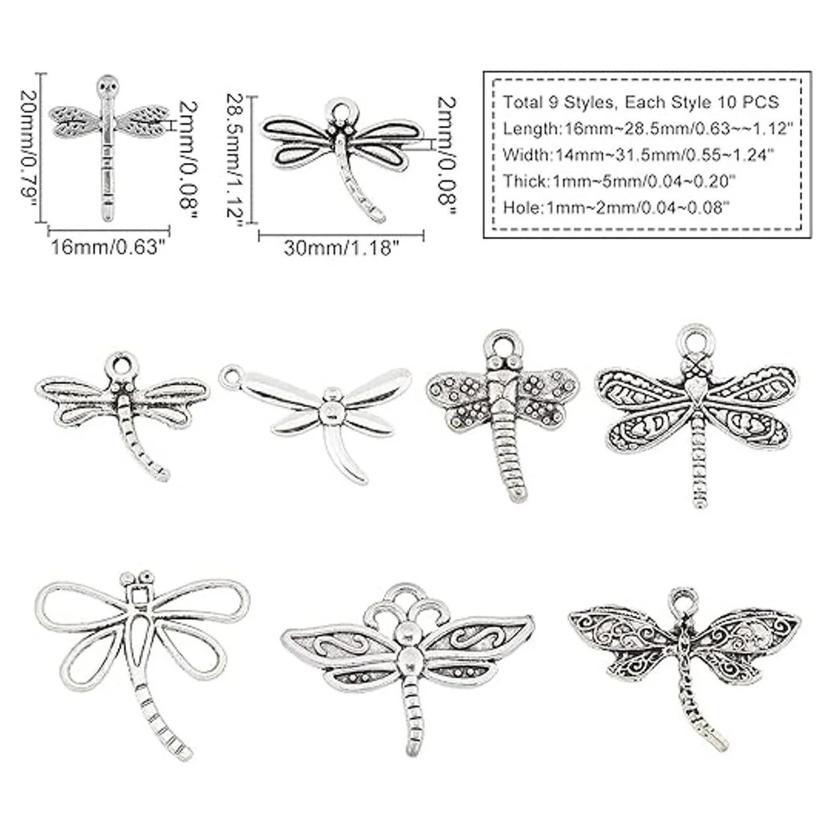 PH PandaHall 90 colgantes tibetanos de aleación de 9 estilos con diseño de libélula voladora, para primavera, verano, bricolaje, collar, pulsera, joyería, plata envejecida