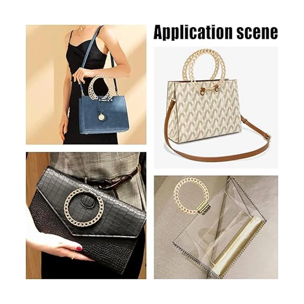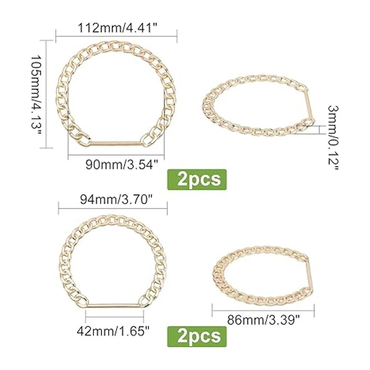 El paquete incluye: Viene con 4 asas de bolsa, en dorado y 2 tamaños, aproximadamente 3.9 x 4.3 in de largo; aproximadamente 3.7 x 3.4 in, el mango de metal en forma de D también es ideal para reparar tu preciada bolsa.