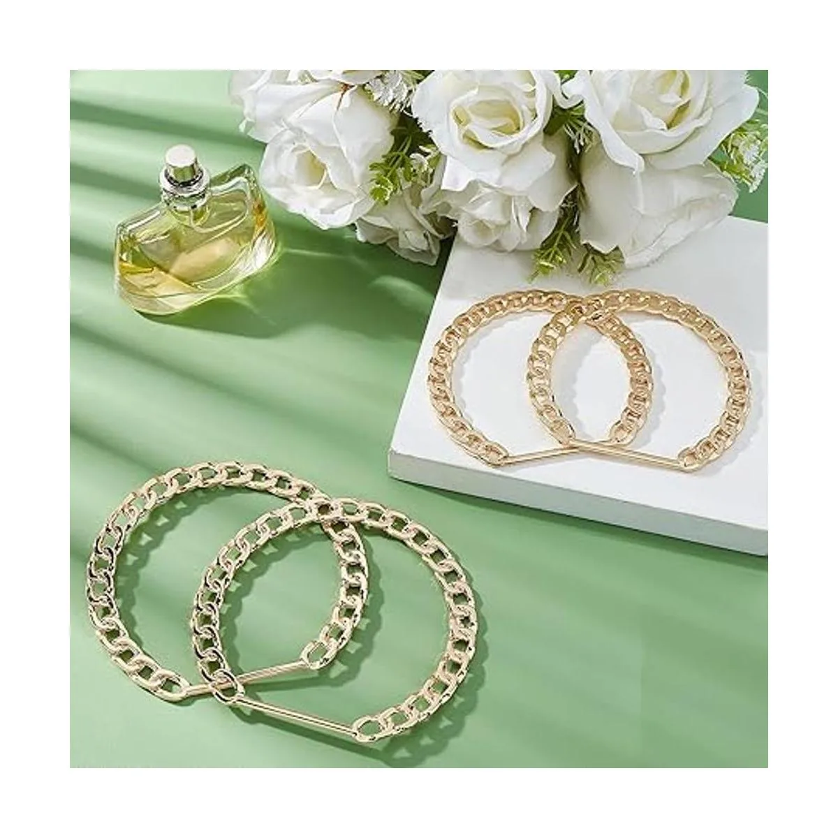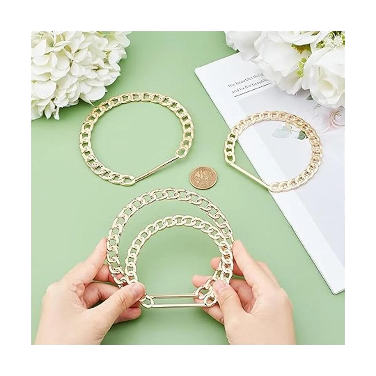 PH PandaHall Asa de bolsa de cadena, 4 piezas de correa de mango de metal de repuesto, asa decorativa para bolso de mano de verano, bolsa de playa, bolsa de pajita, color dorado