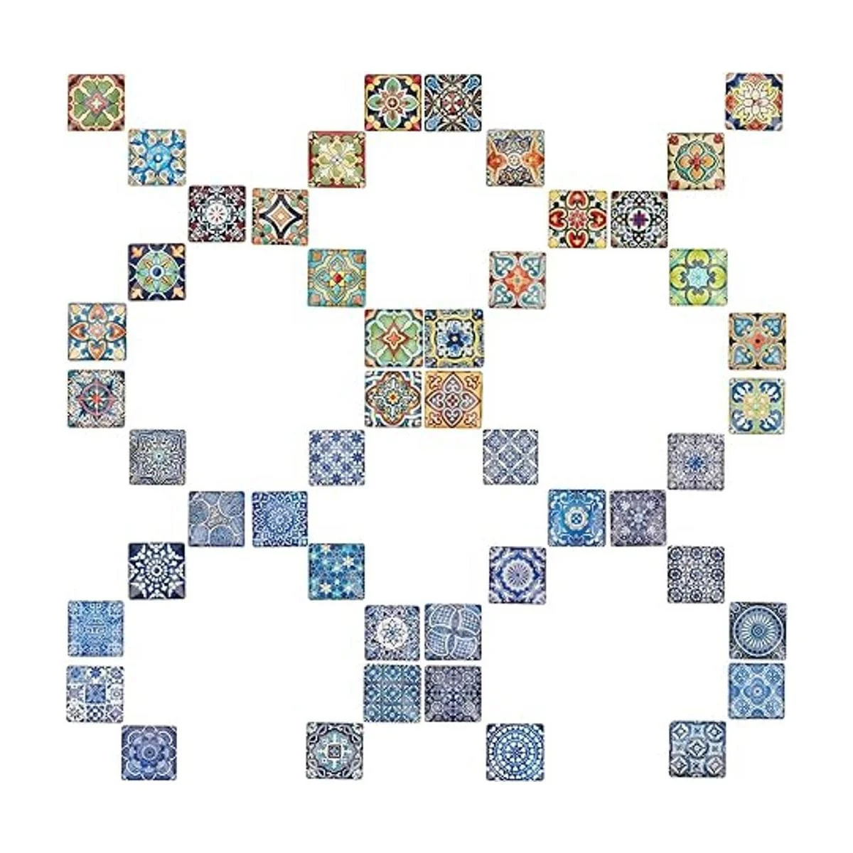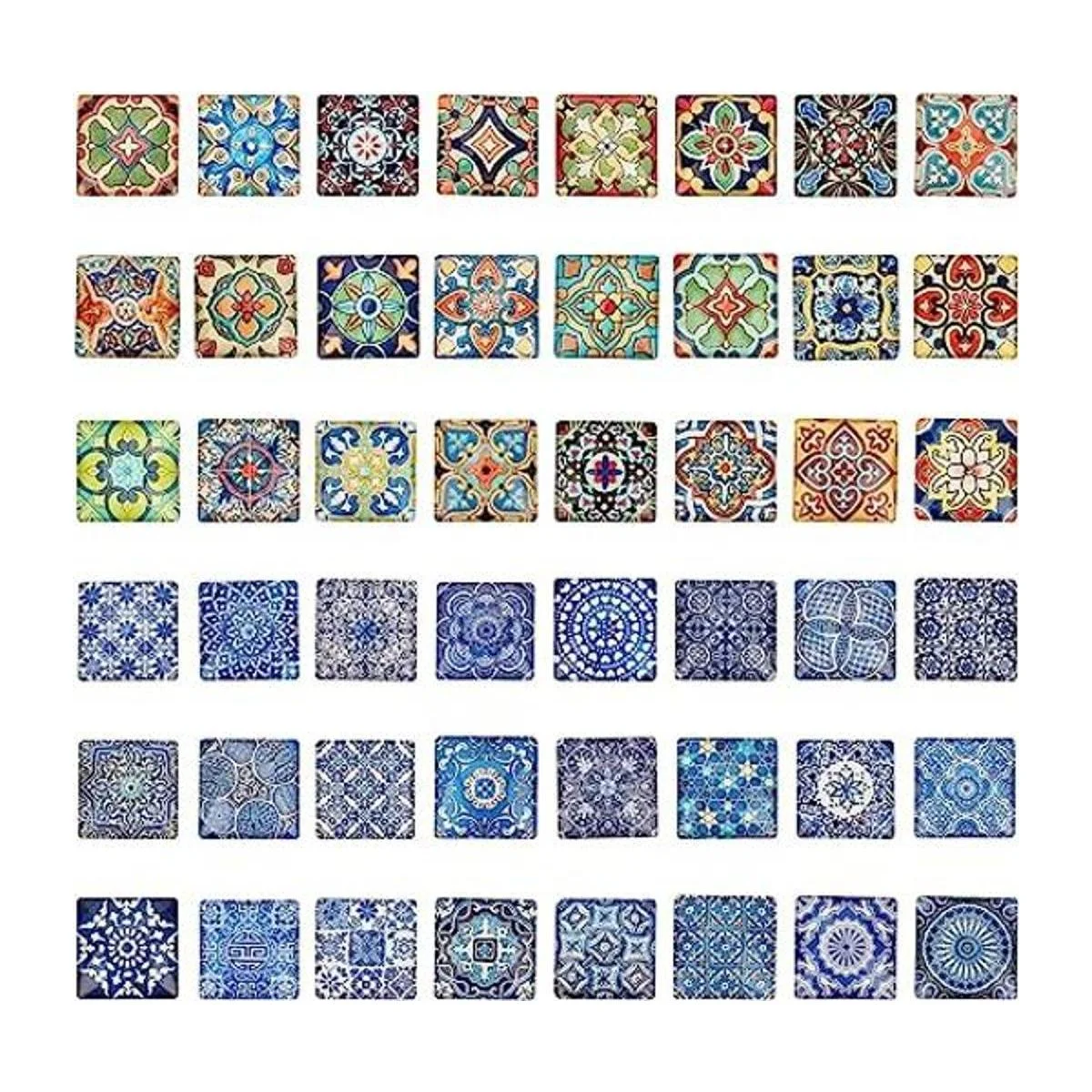 El paquete incluye: aproximadamente 0.984 x 0.984 x 0.276 in. Cantidad: 48 unidades. Material: vidrio con barra de papel en la parte posterior; varios patrones para satisfacer tus diferentes preferencias.