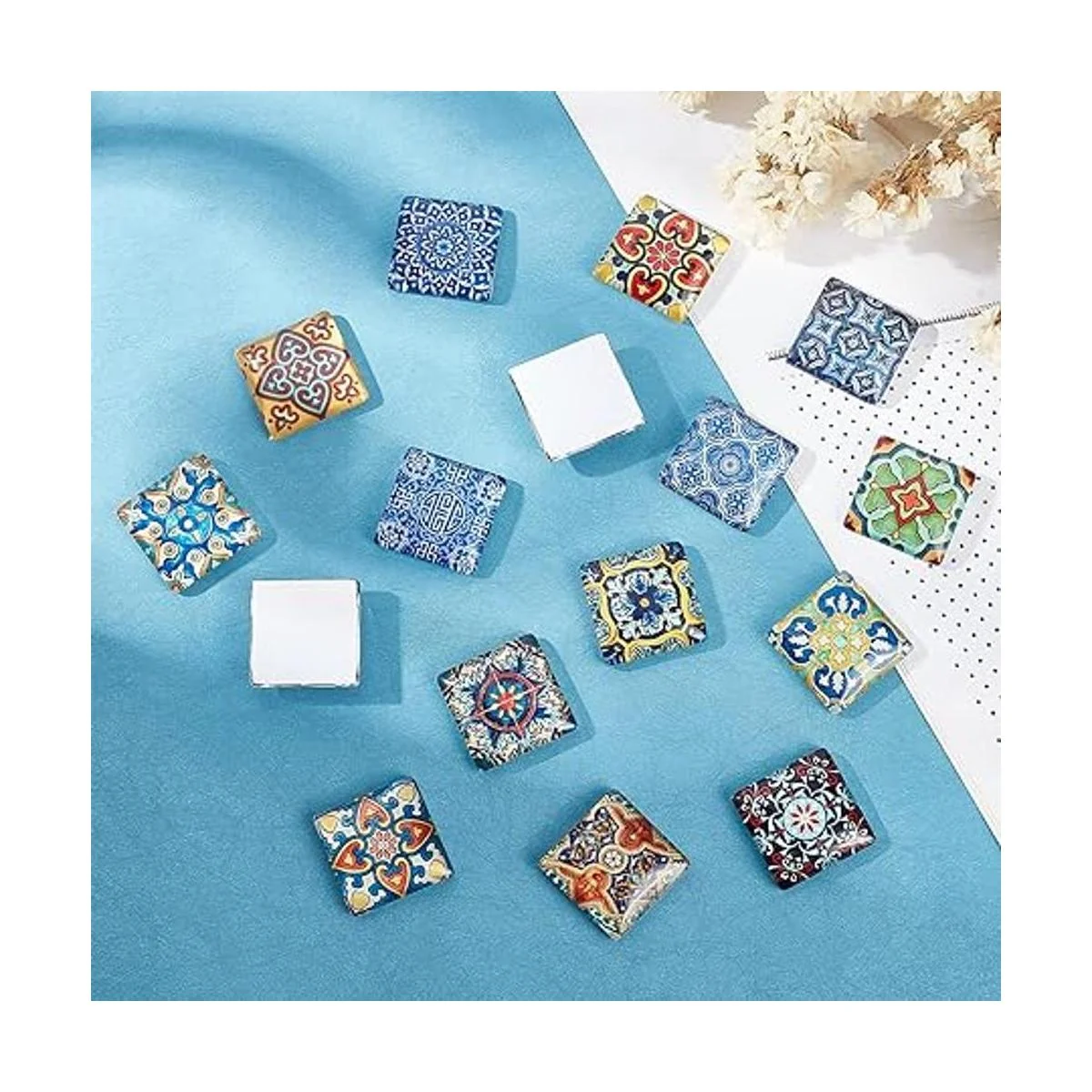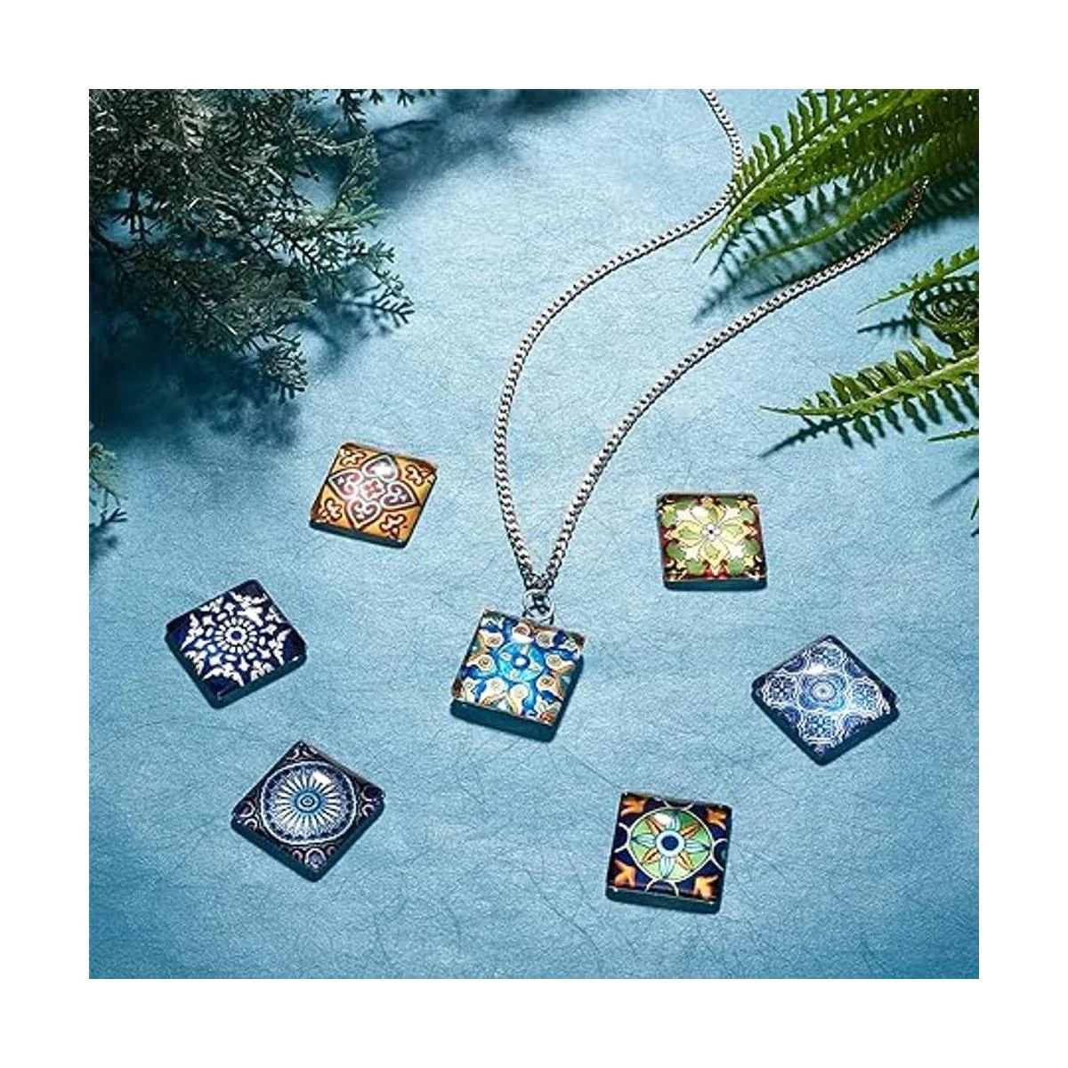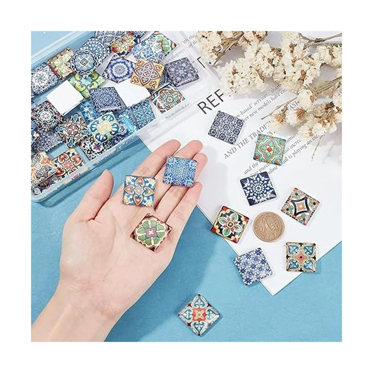 PH PandaHall Cabujones cuadrados de mosaico de 1 pulgada, Azulejos de mosaico de flores de 0.984 in, patrón de mandala de yoga, mosaico, cabujones de cúpula de vidrio impreso para foto, colgante de camafeo, manualidades, suministros de joyería, manualidades, 48 piezas