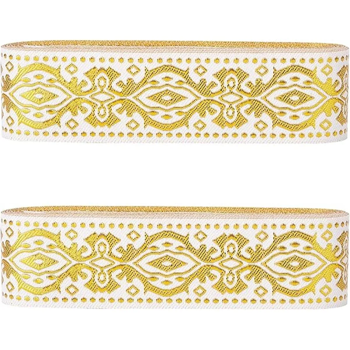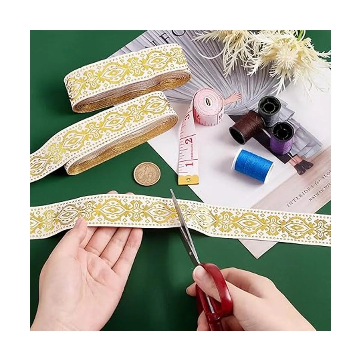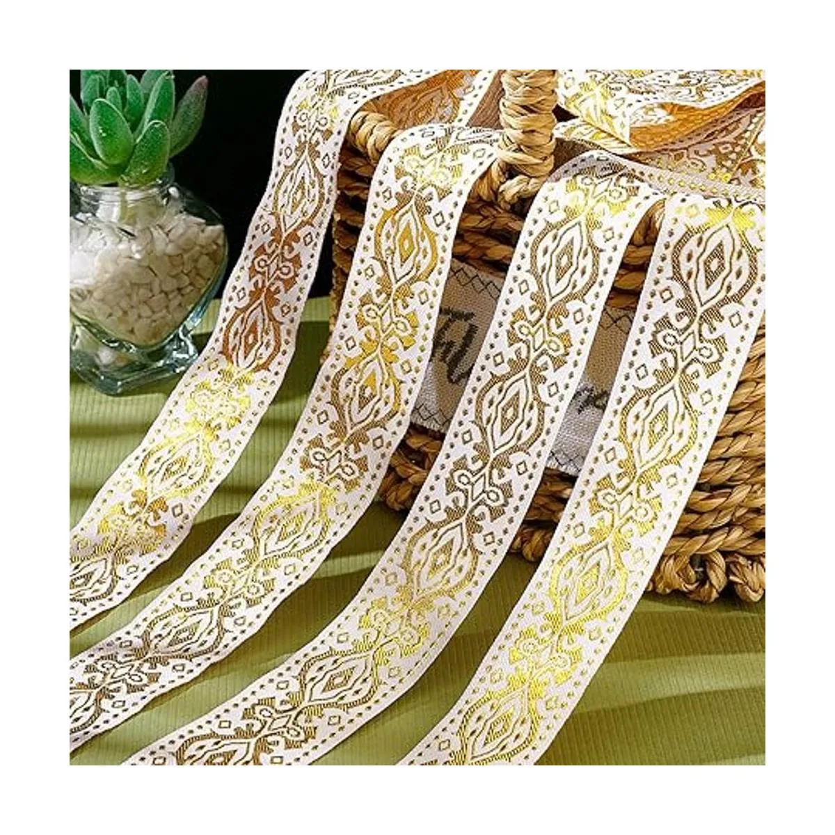 Cinta jacquard: el jacquard es una cinta tan destreza, es la edición perfecta para cualquier proyecto Diseñado con patrón floral y geométrico, en estilo único y color dorado, haciendo que tu estilo sea único, se puede combinar arbitrariamente.