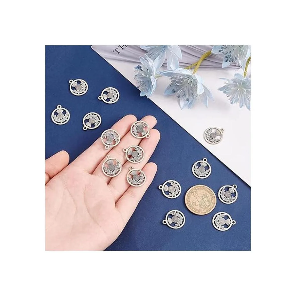 UNIQUE APPEARANCE: The pendants feature flat round with flower Scotland thistle, Tibetan style. They can also compatible with European charm bracelet and necklace. The Tibetan style pendant can bring you happiness and strength