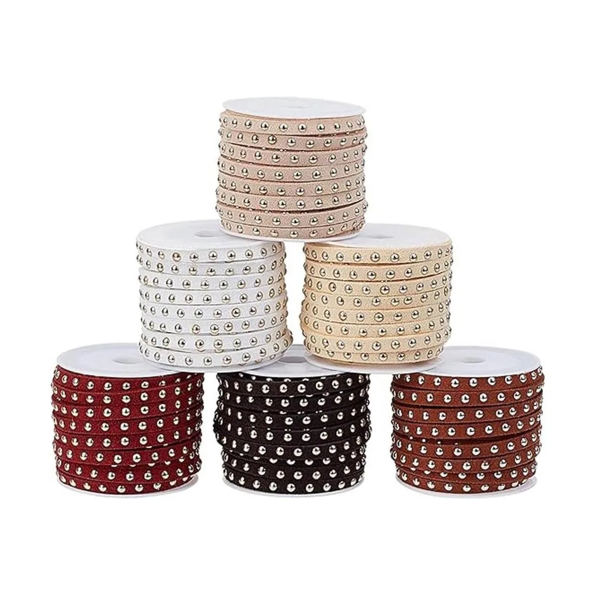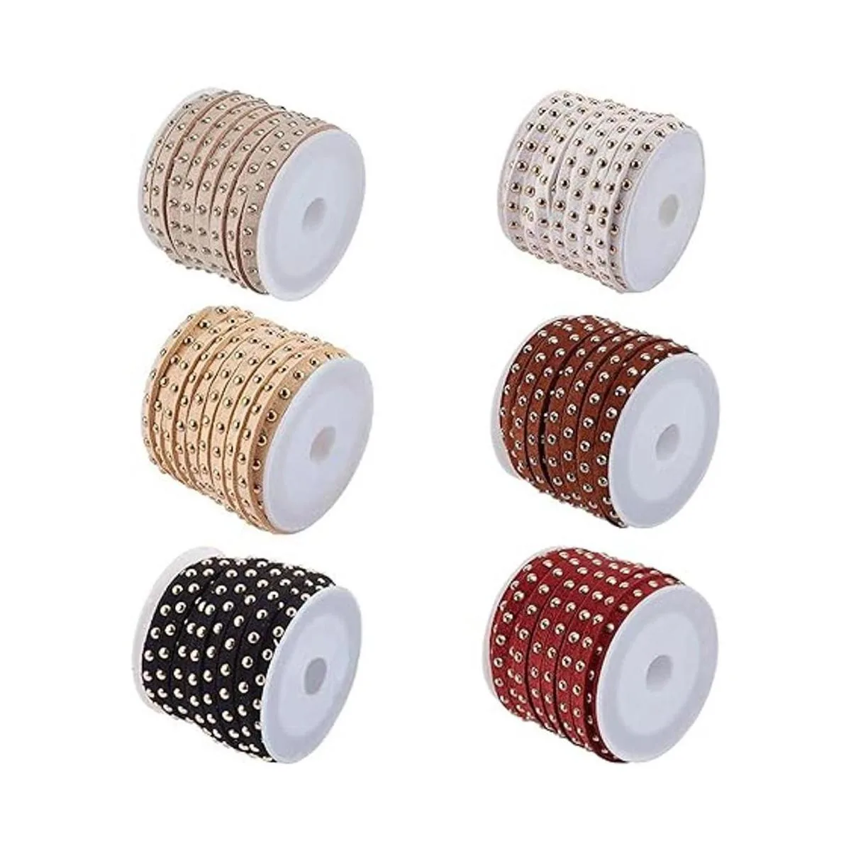 PH PandaHall Cordón de gamuza sintética de 33 yardas, cuerda de piel sintética de 0.197 in con remache, 6 colores, cordón de gamuza con remache dorado punk para hacer joyas, collares, pulseras, decoración de disfraces